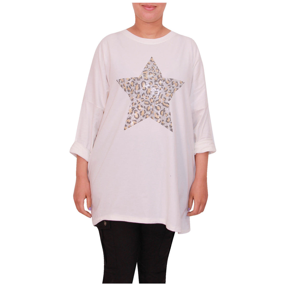 Women Italian Star Top Ladies Animal Print Cotton Tunic Top