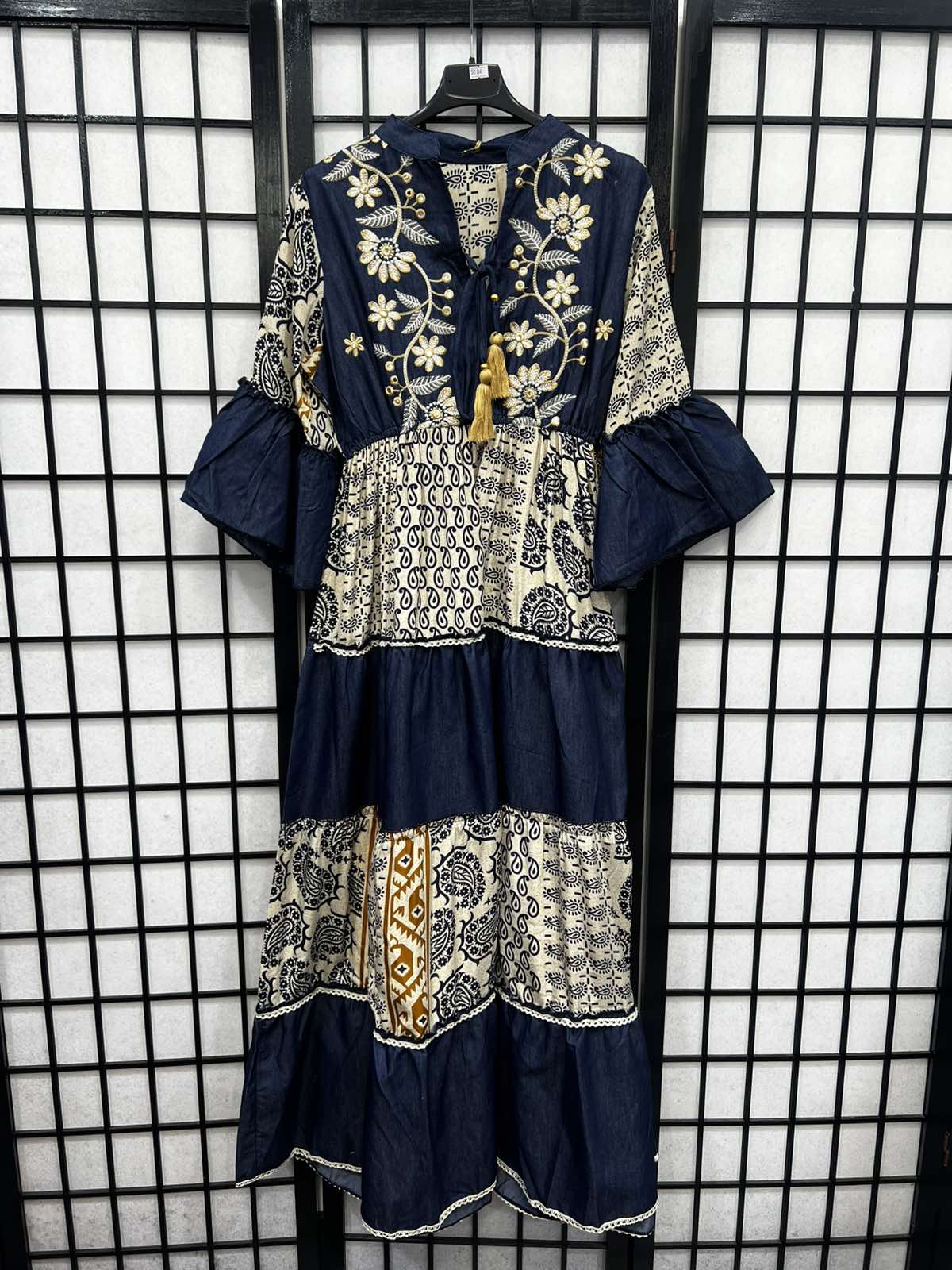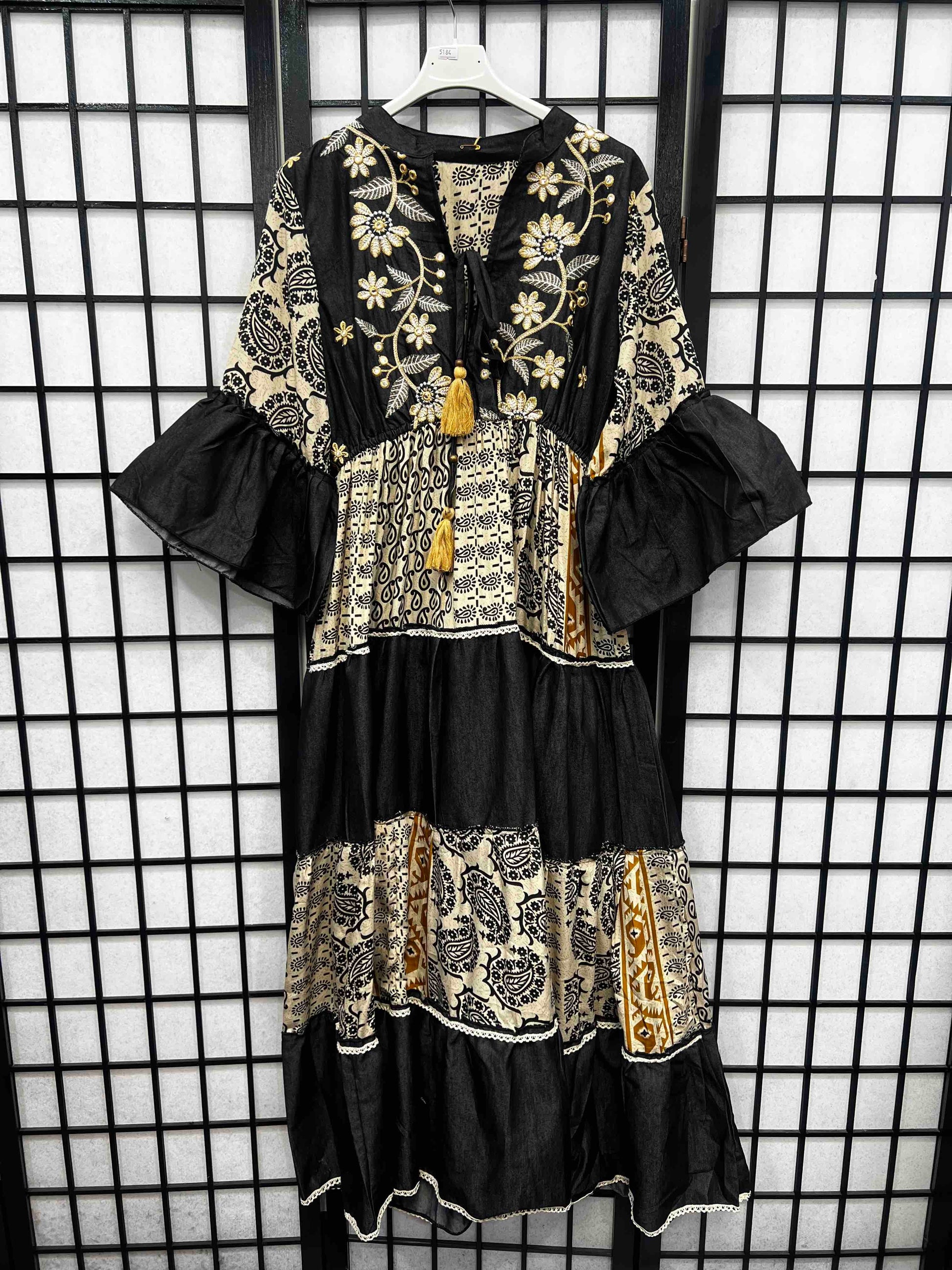 Boho Embroidery Detail Tie Neck Dress-5184