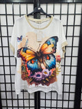 Italian Butterfly Print Top With Glitter Neck line And Sleeve - 4887