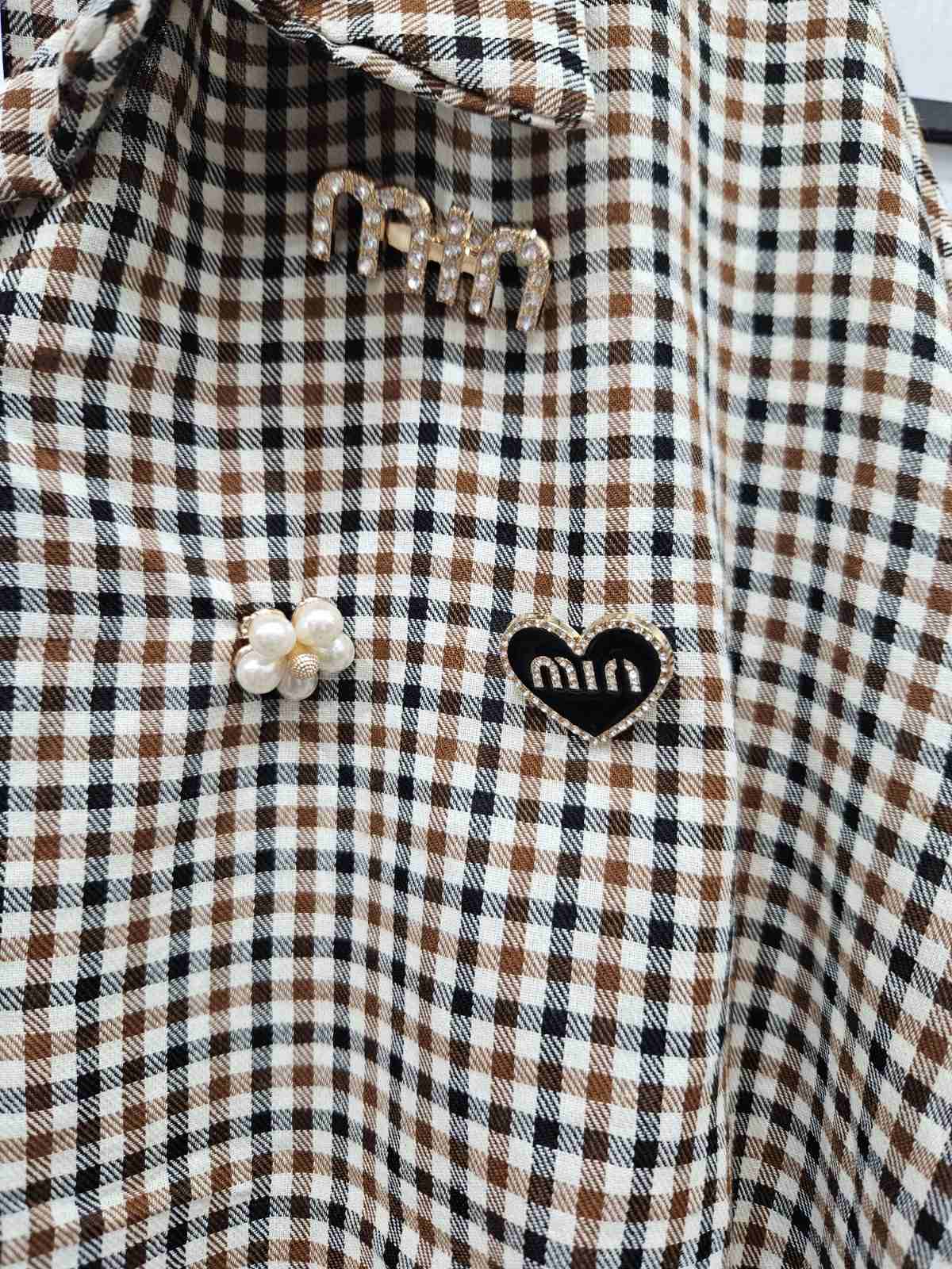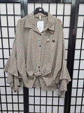 Italian Checked Front Knot Ruffle Arm Shirt With Broaches- 5236