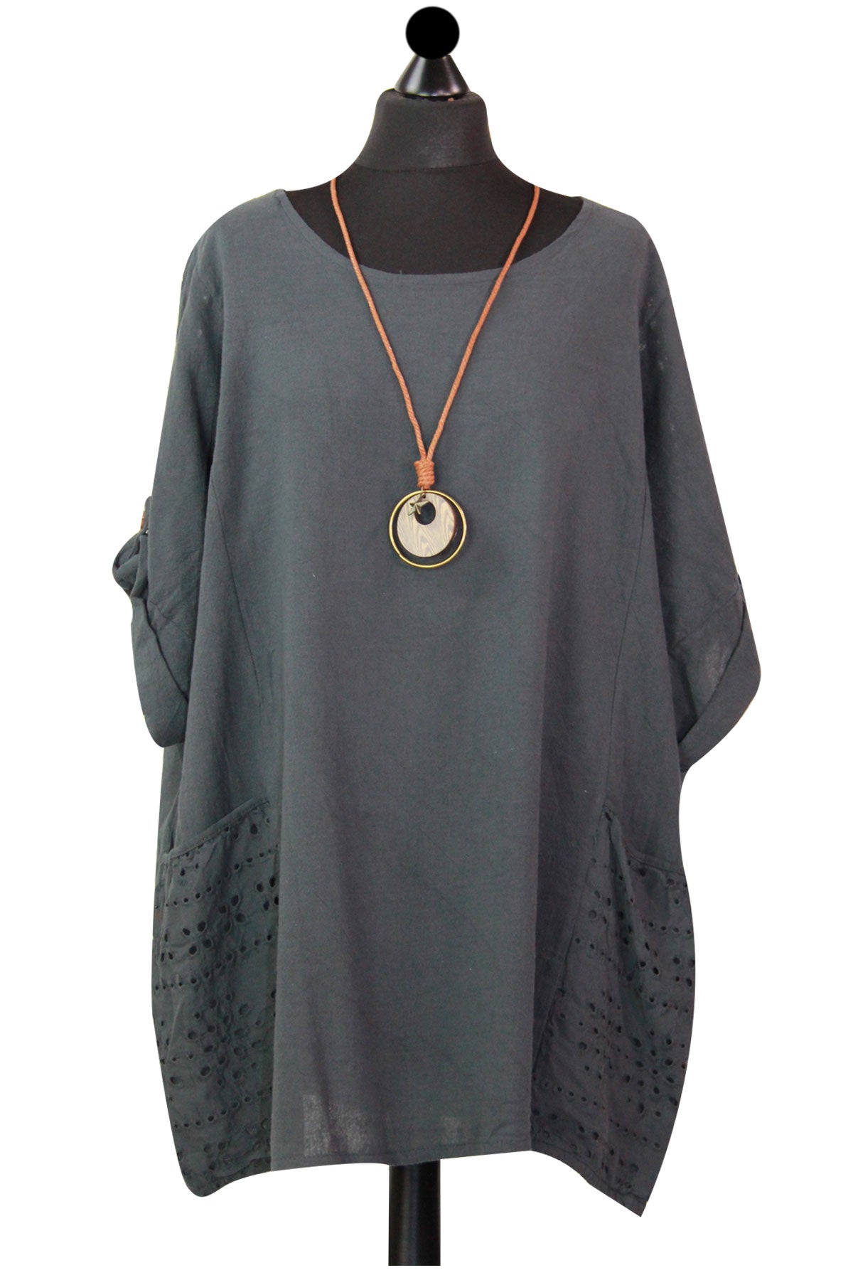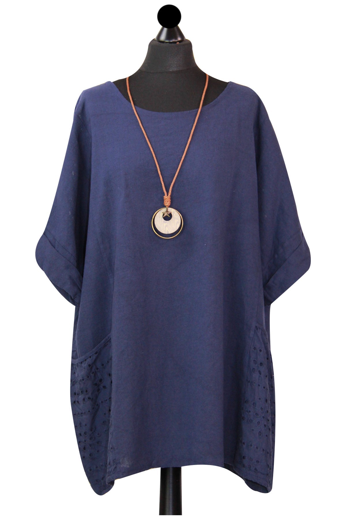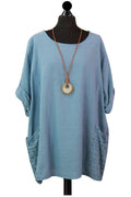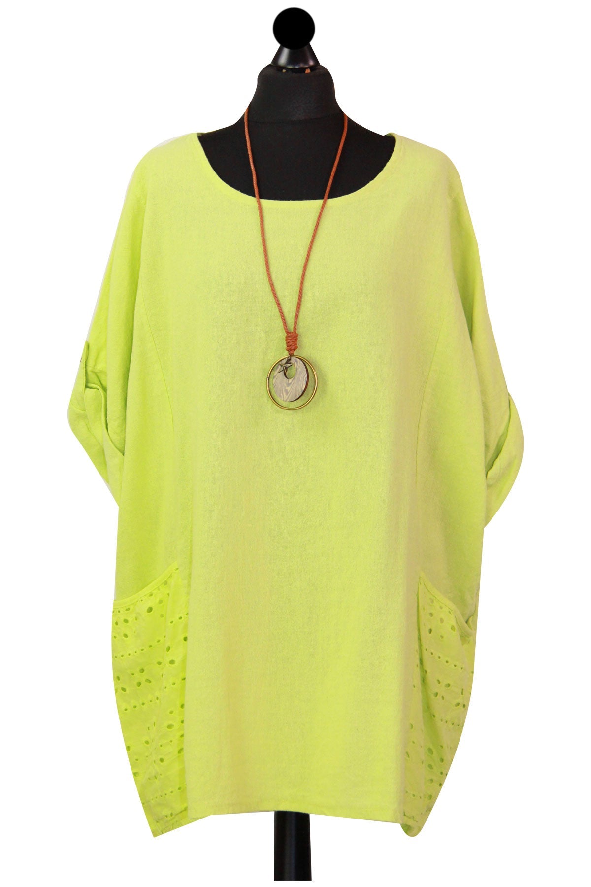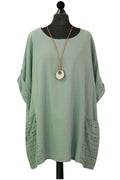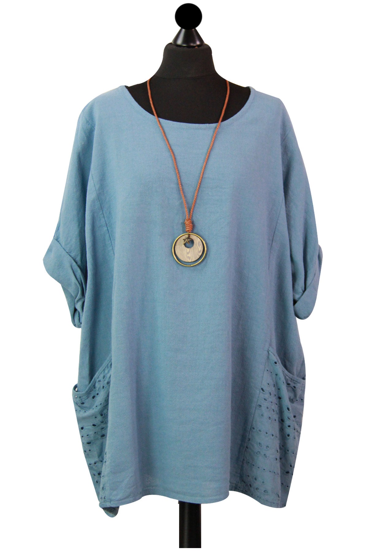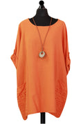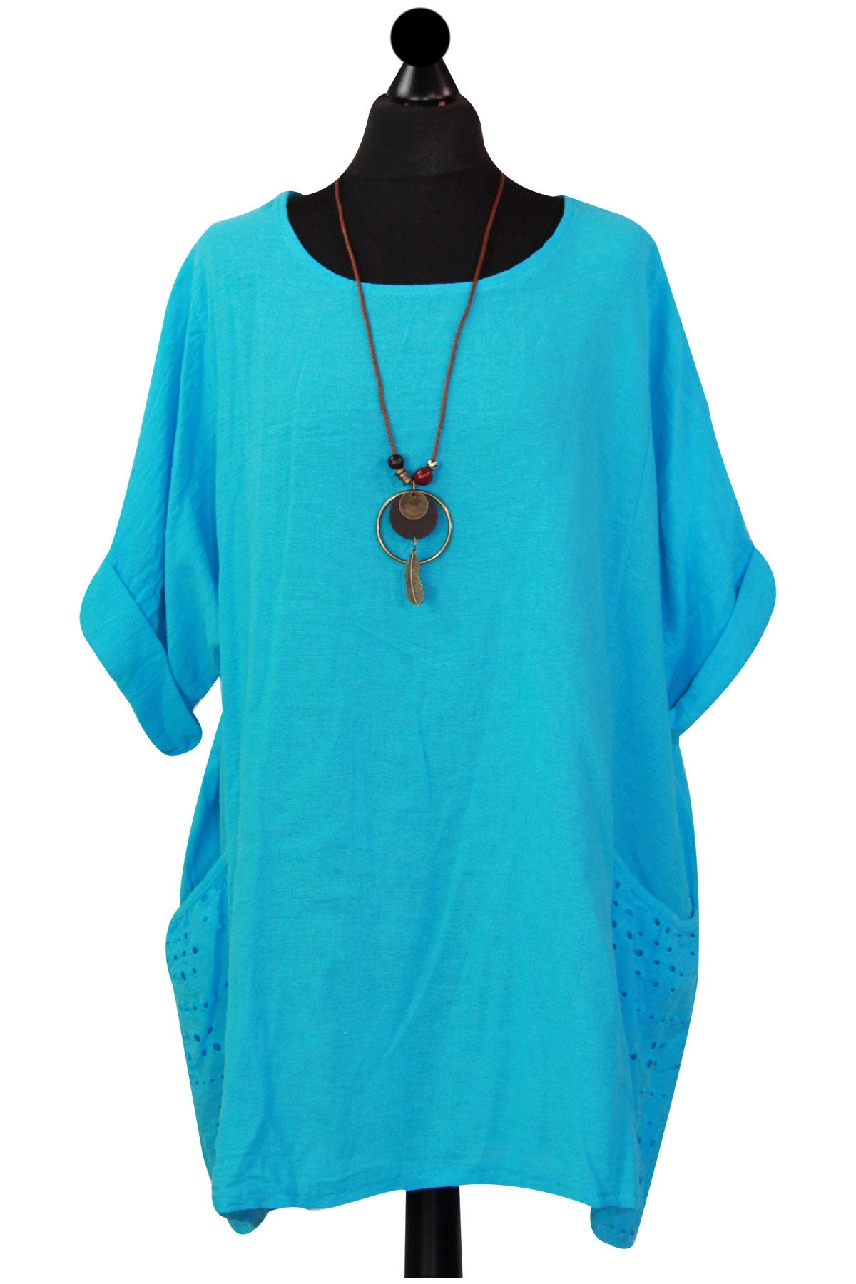 Style is all in the details. Assist your self by restocking this gorgeous item. Features Cotton material Italian Ladies Pocket Necklace Top Scoop Neck 3/4 Sleeve Soft and comfortable material Top. This garment is a must have any wardrobe this season.
