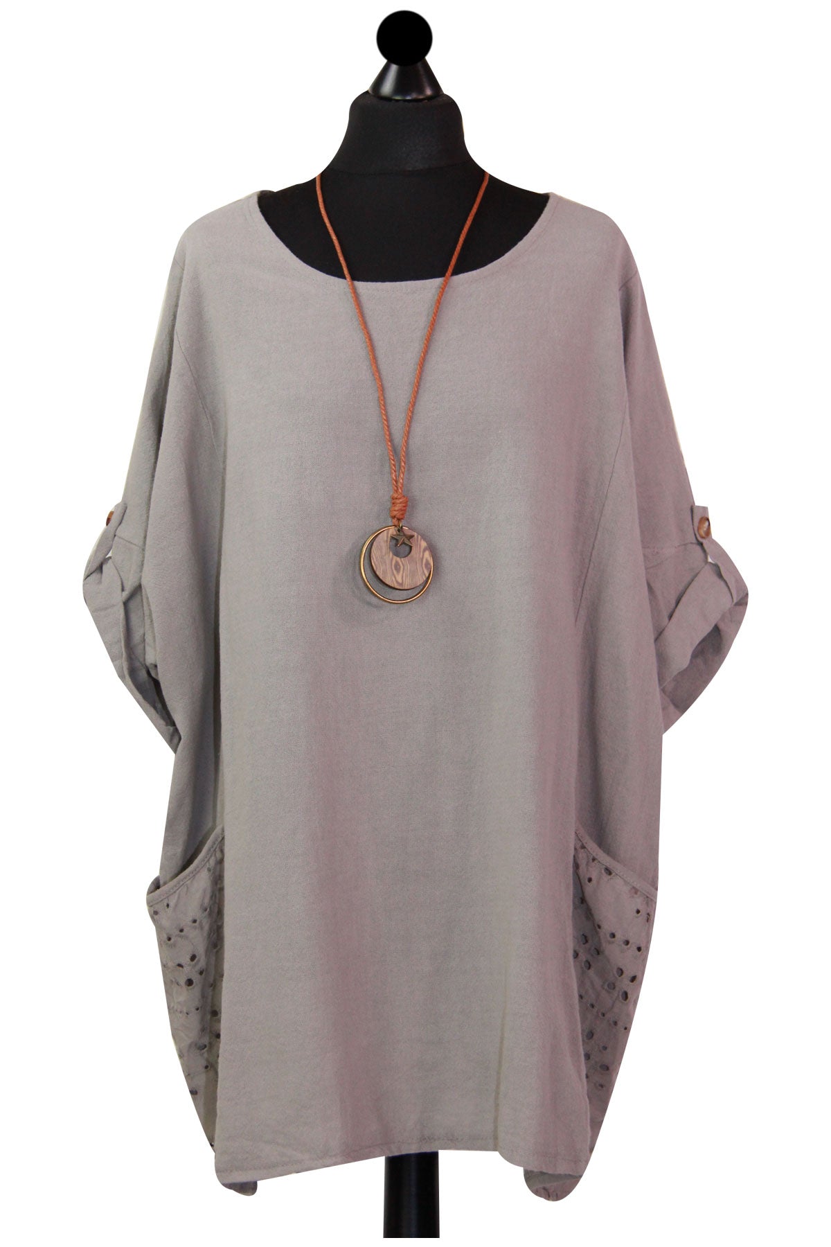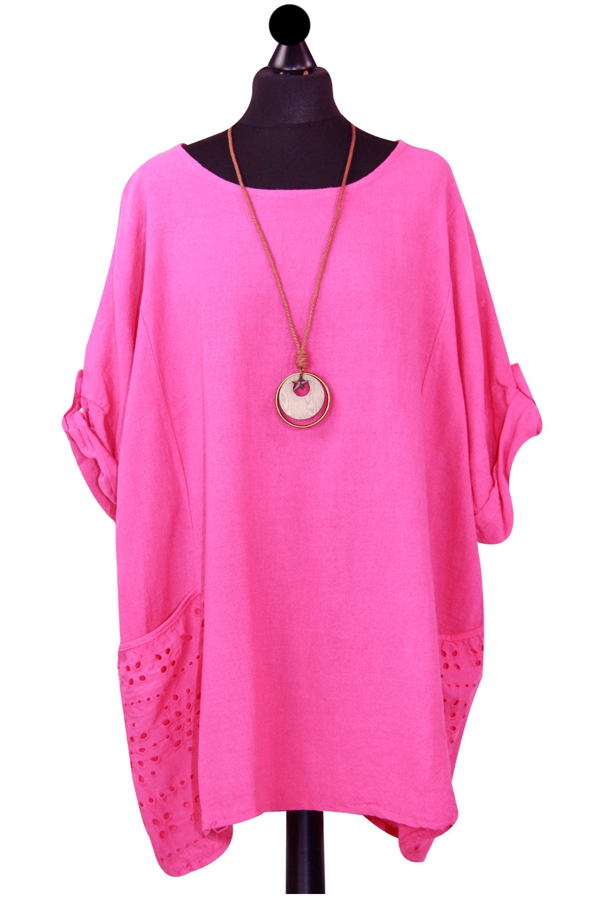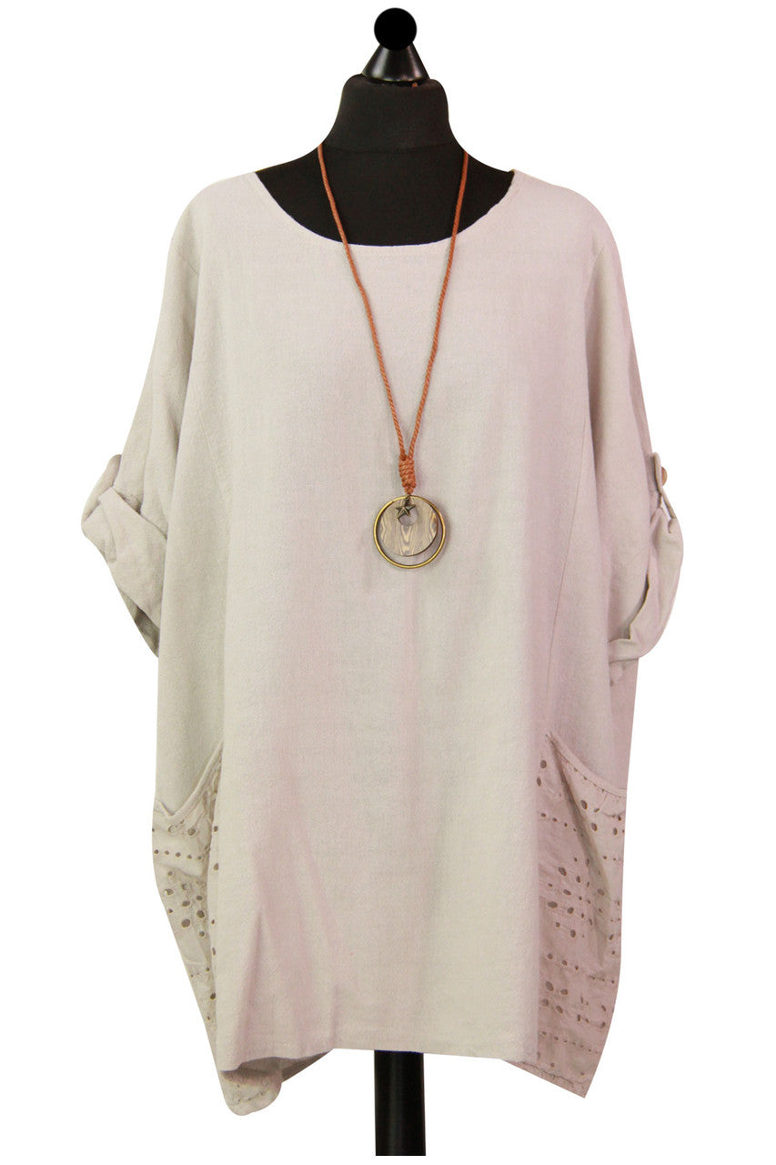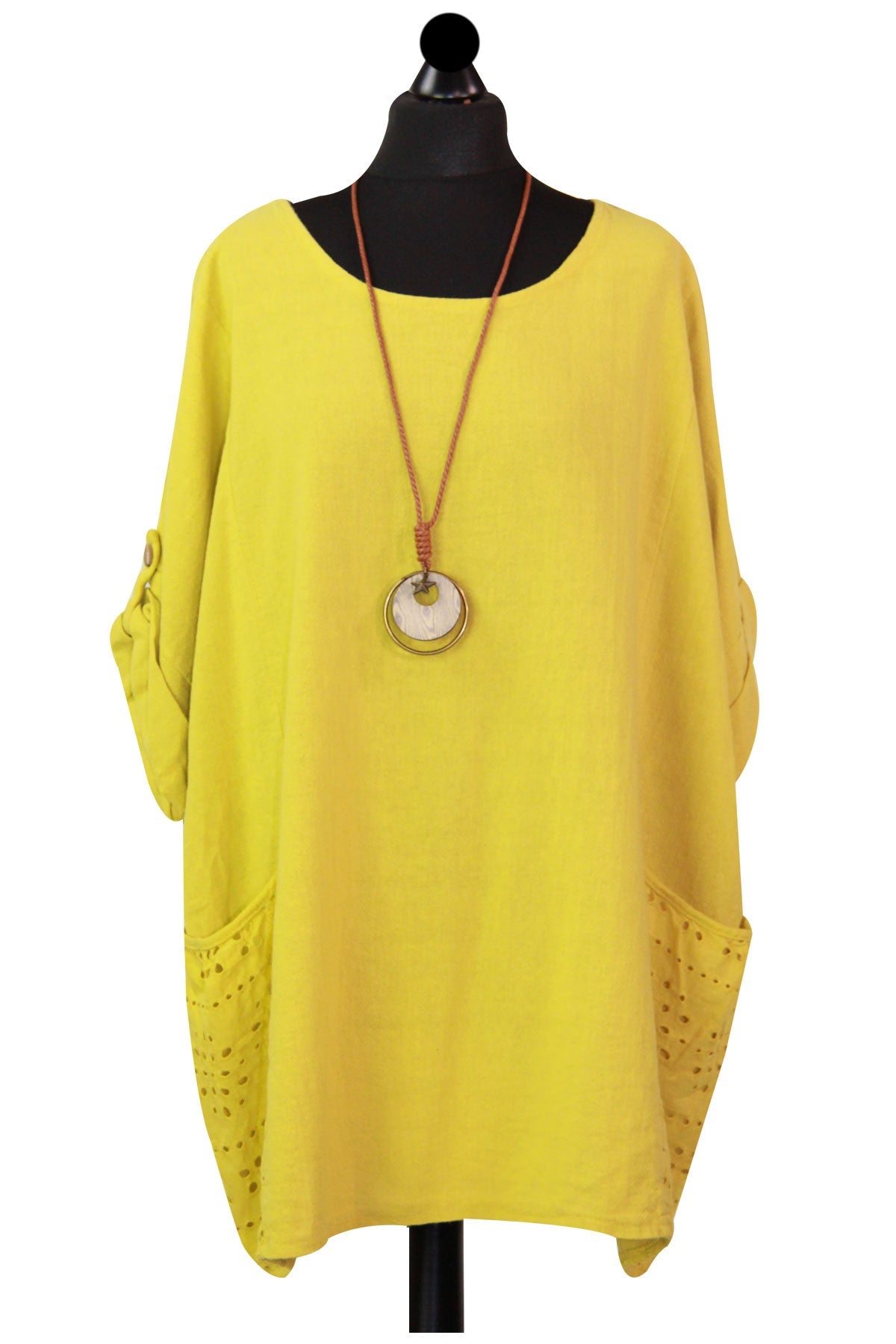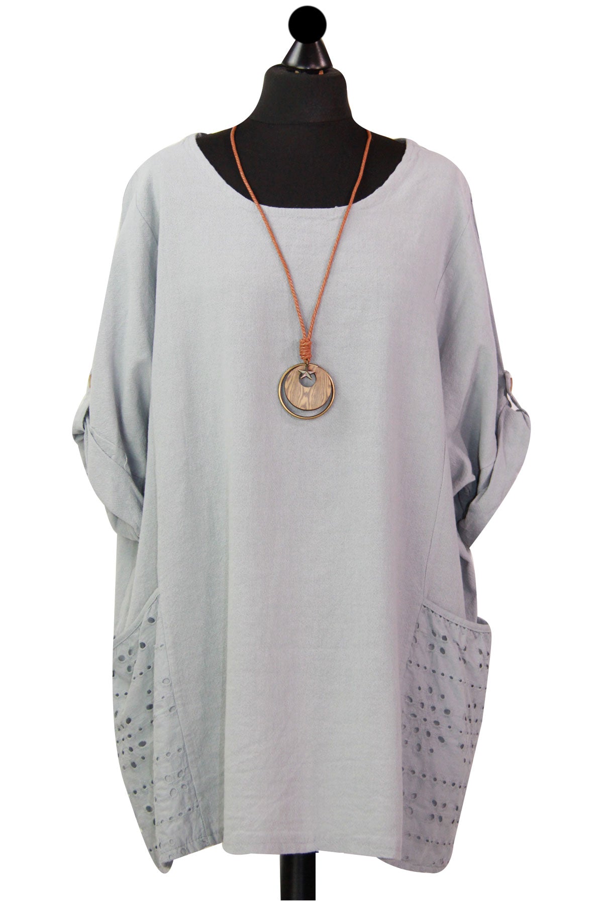 Style is all in the details. Assist your self by restocking this gorgeous item. Features Cotton material Italian Ladies Pocket Necklace Top Scoop Neck 3/4 Sleeve Soft and comfortable material Top. This garment is a must have any wardrobe this season.