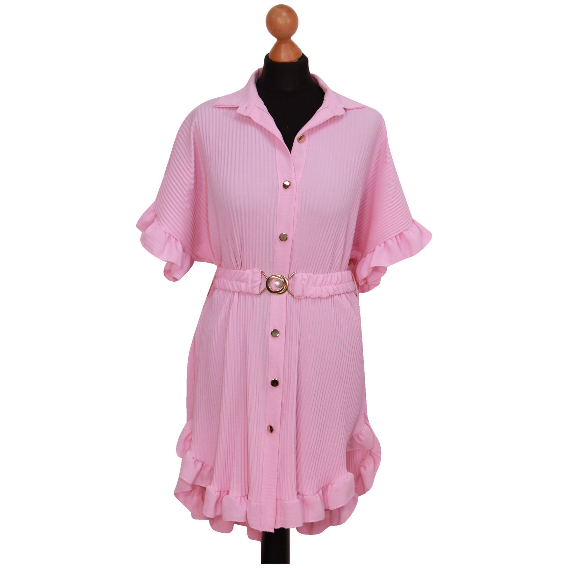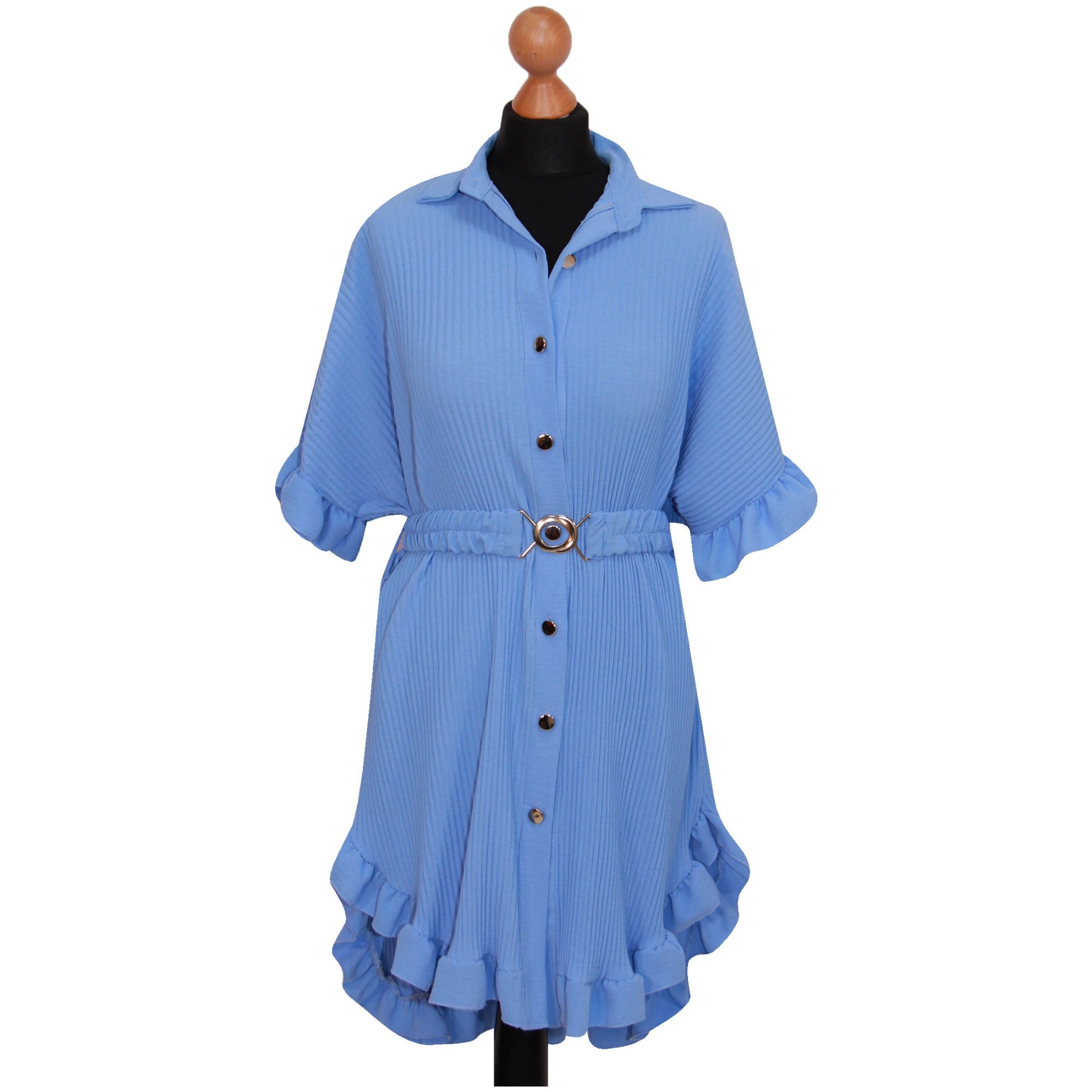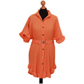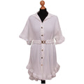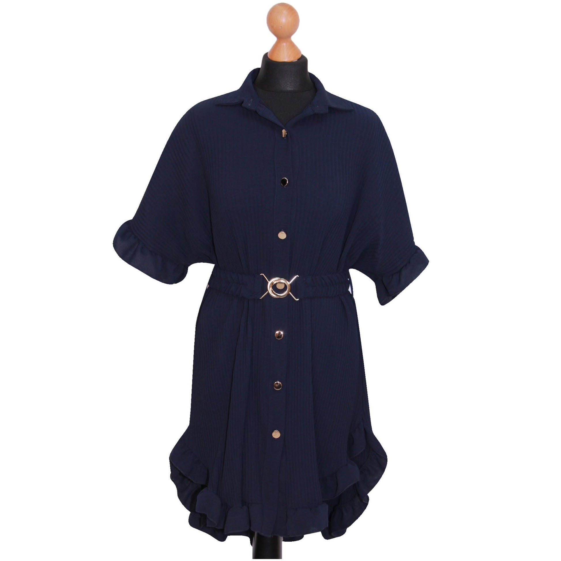 LADIES FRILL DRESS WOMEN GOLD BUTTON TOP FASHION GIRLS NIGHT OUT Party DRESS CASUAL BELTED