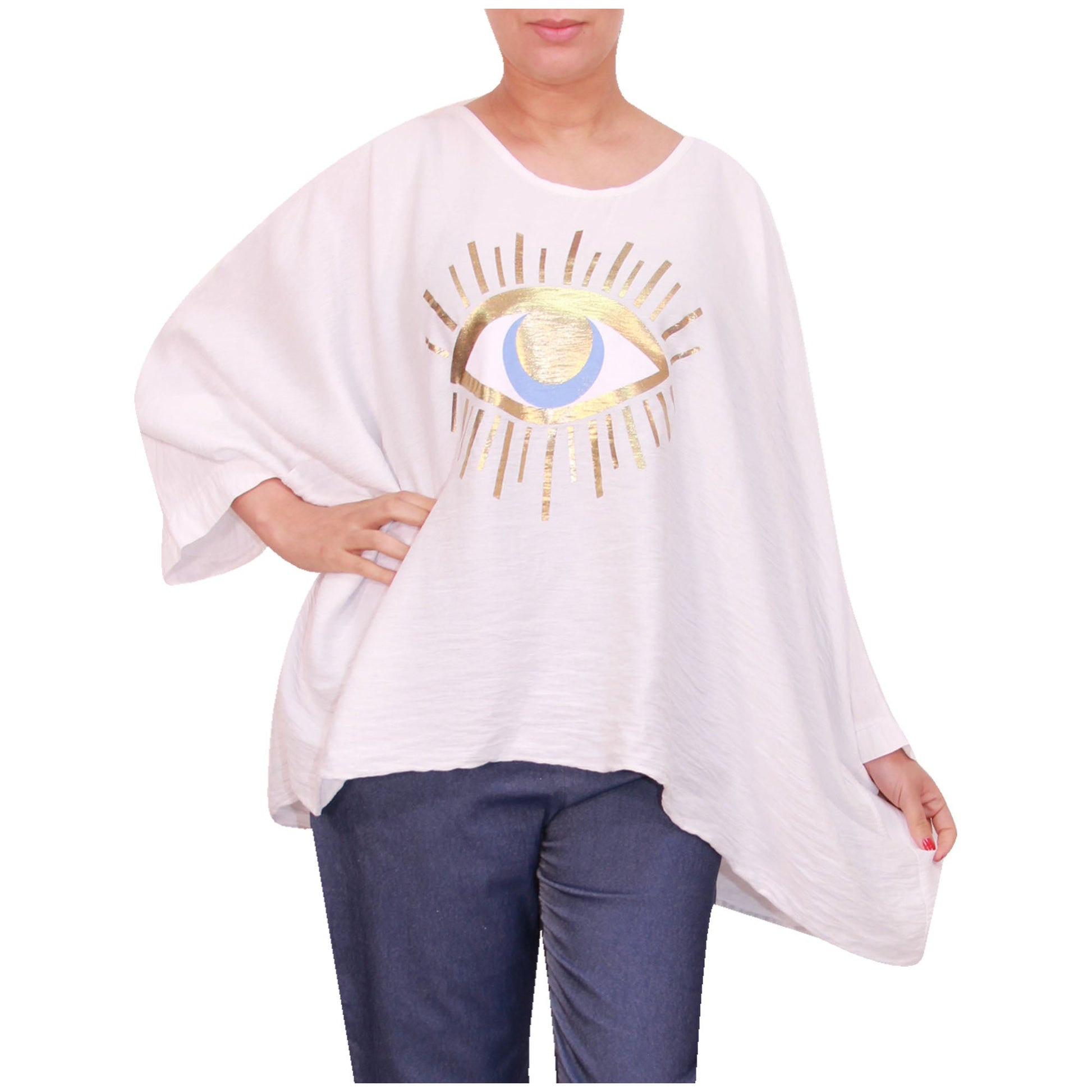 Ladies Italian Top Women Evil Eye Shirt Summer Girls Casual Blouse