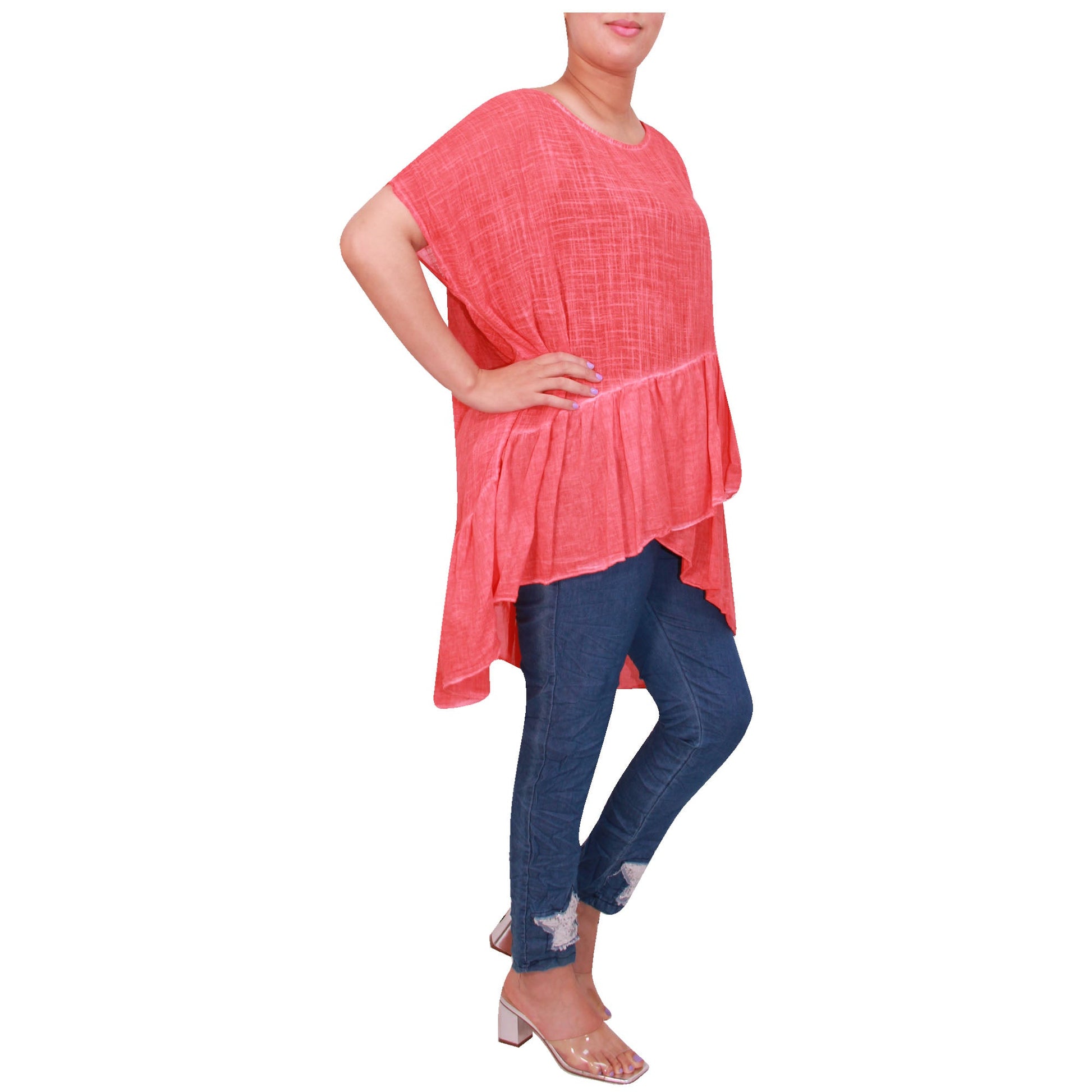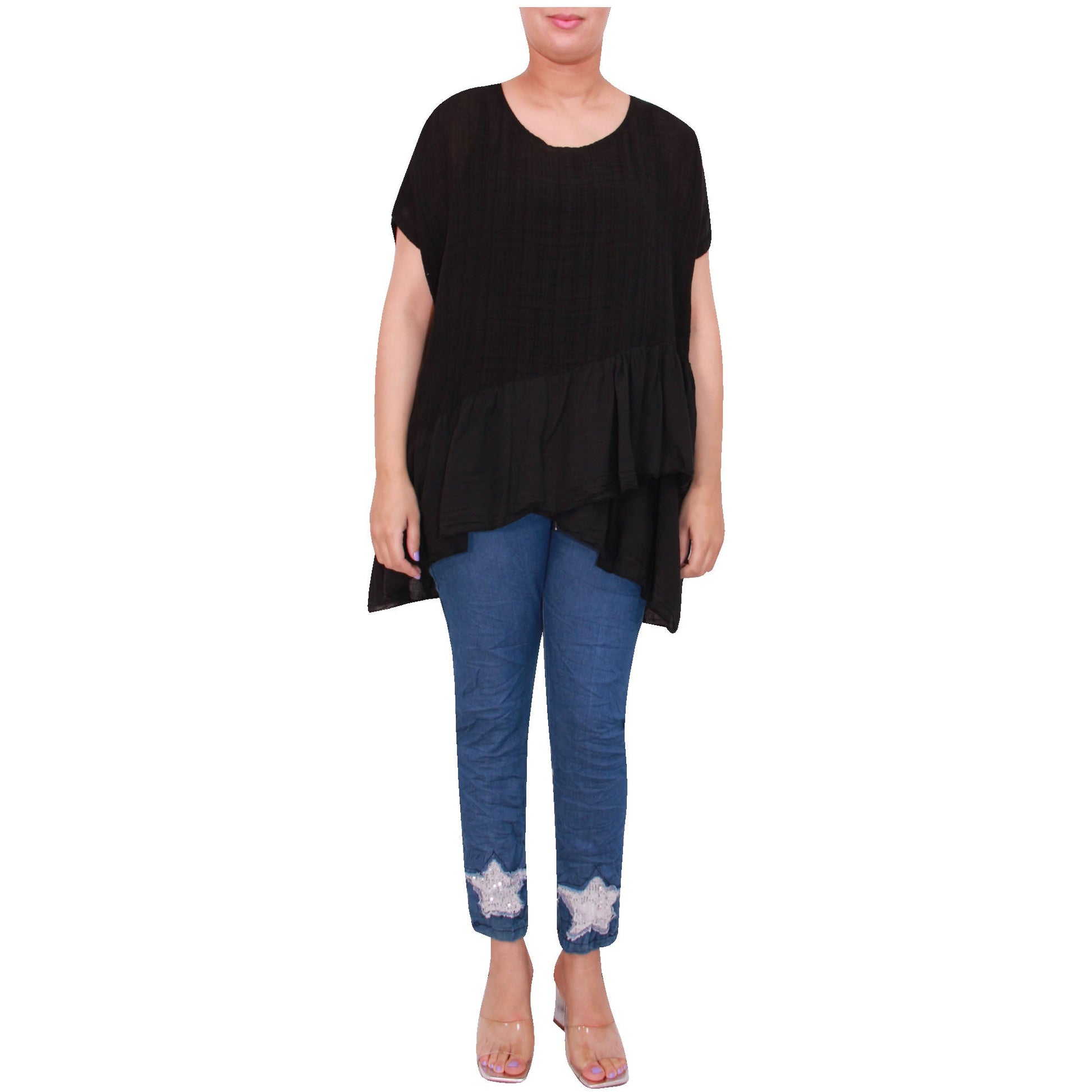 Ladies Italian Top Women Frill Top Step Hem Quirky Cotton Tunic Top