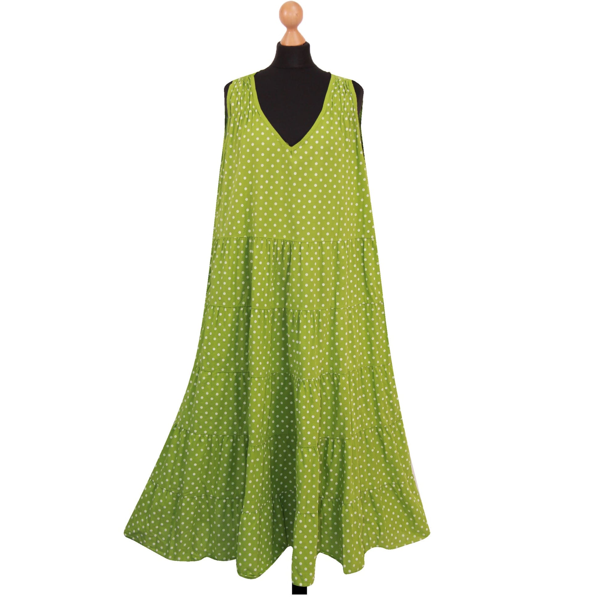 LADIES MAXI DRESS WOMEN PRINTED POLKA DOTTED SLEEVELESS SOFT COTTON PLUS SIZE ITALIAN TOP SUMMER HOLIDAYS CASUAL