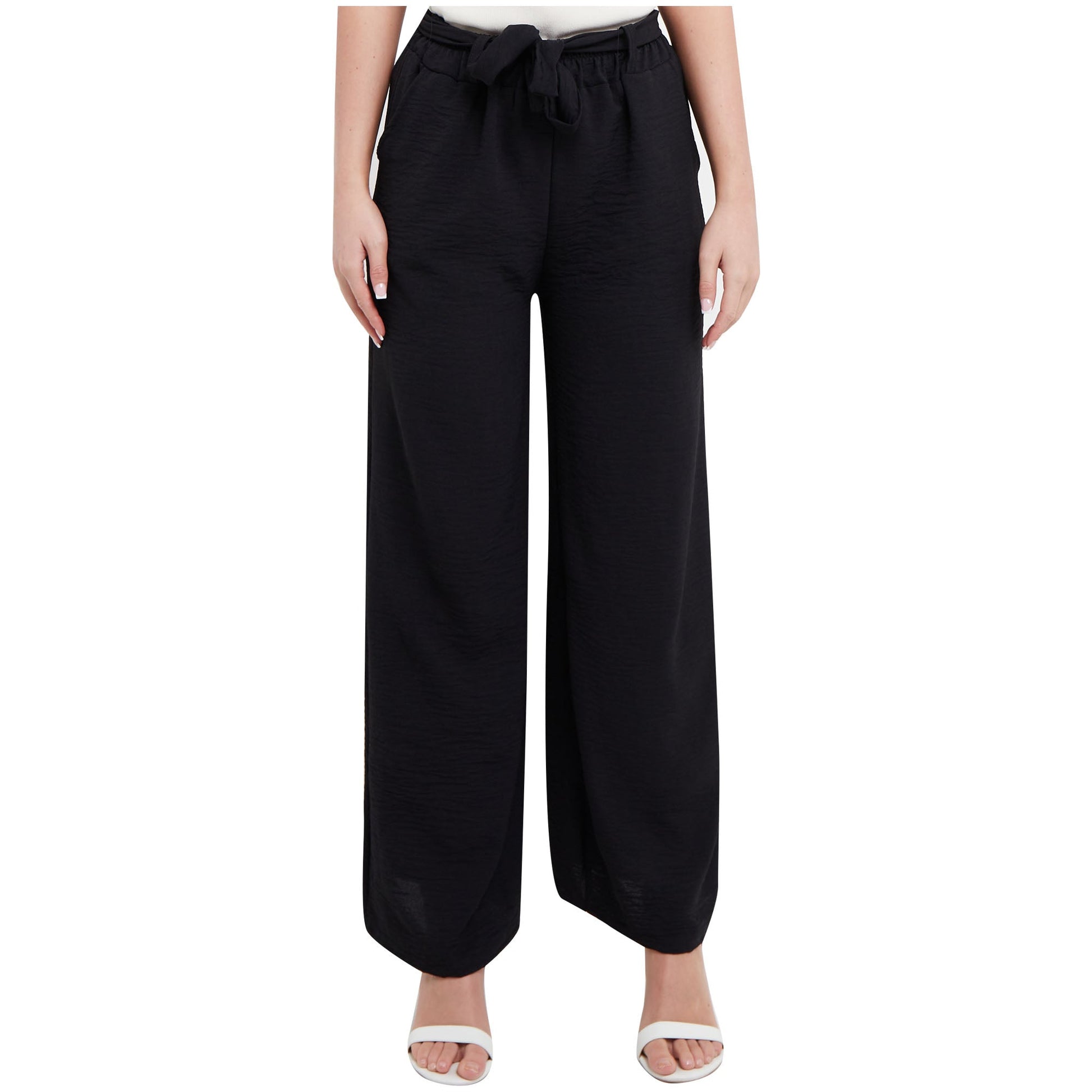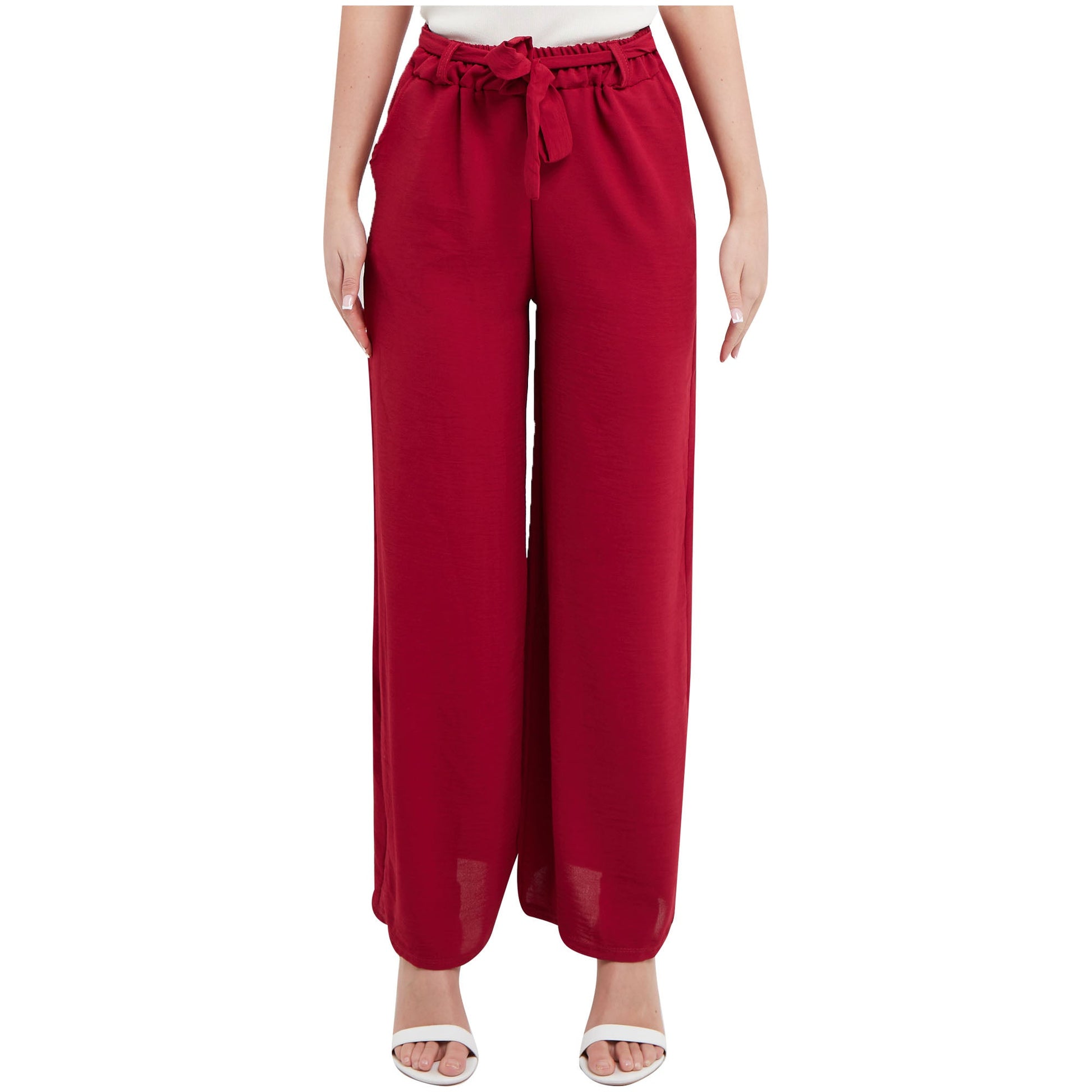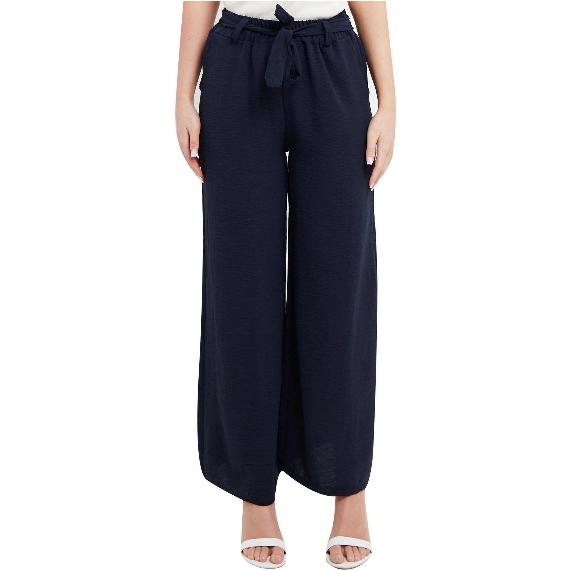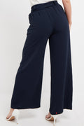 Ladies Palazzo Women Plain Tie Knot Trouser Wide Leg Bottom Pants