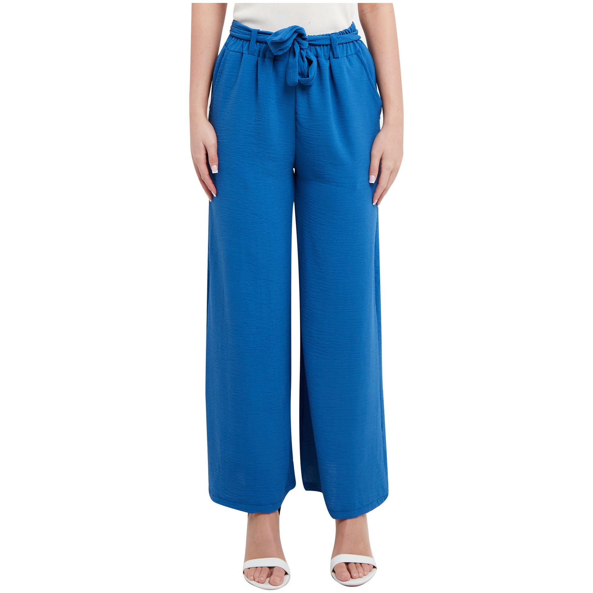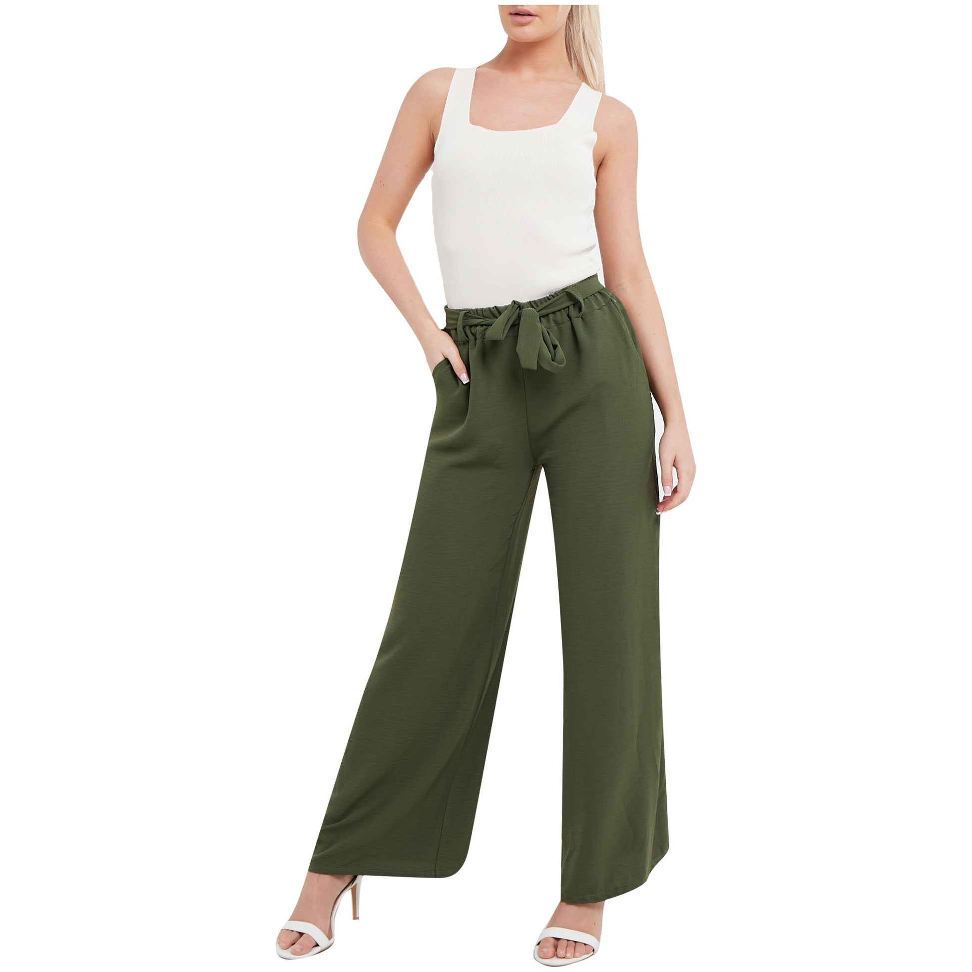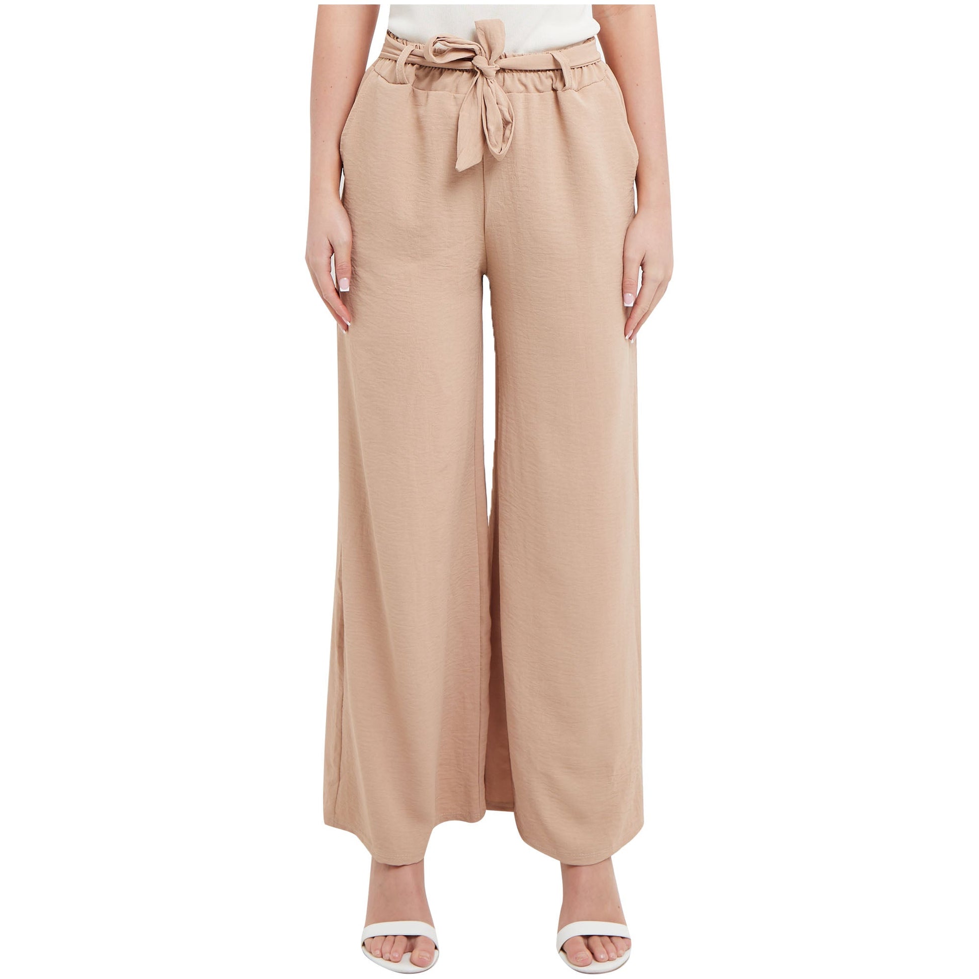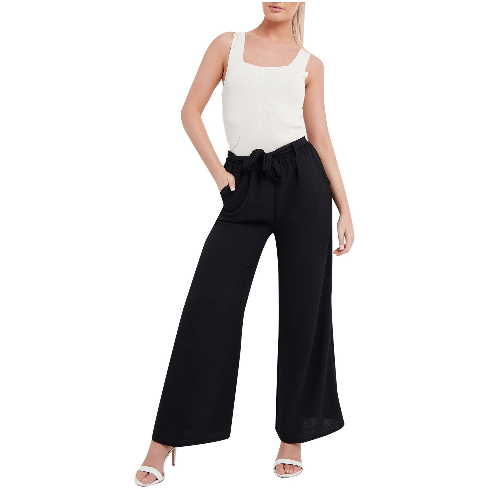 Ladies Palazzo Women Plain Tie Knot Trouser Wide Leg Bottom Pants