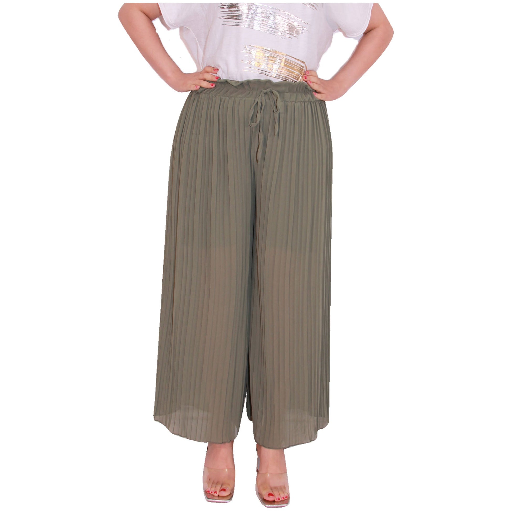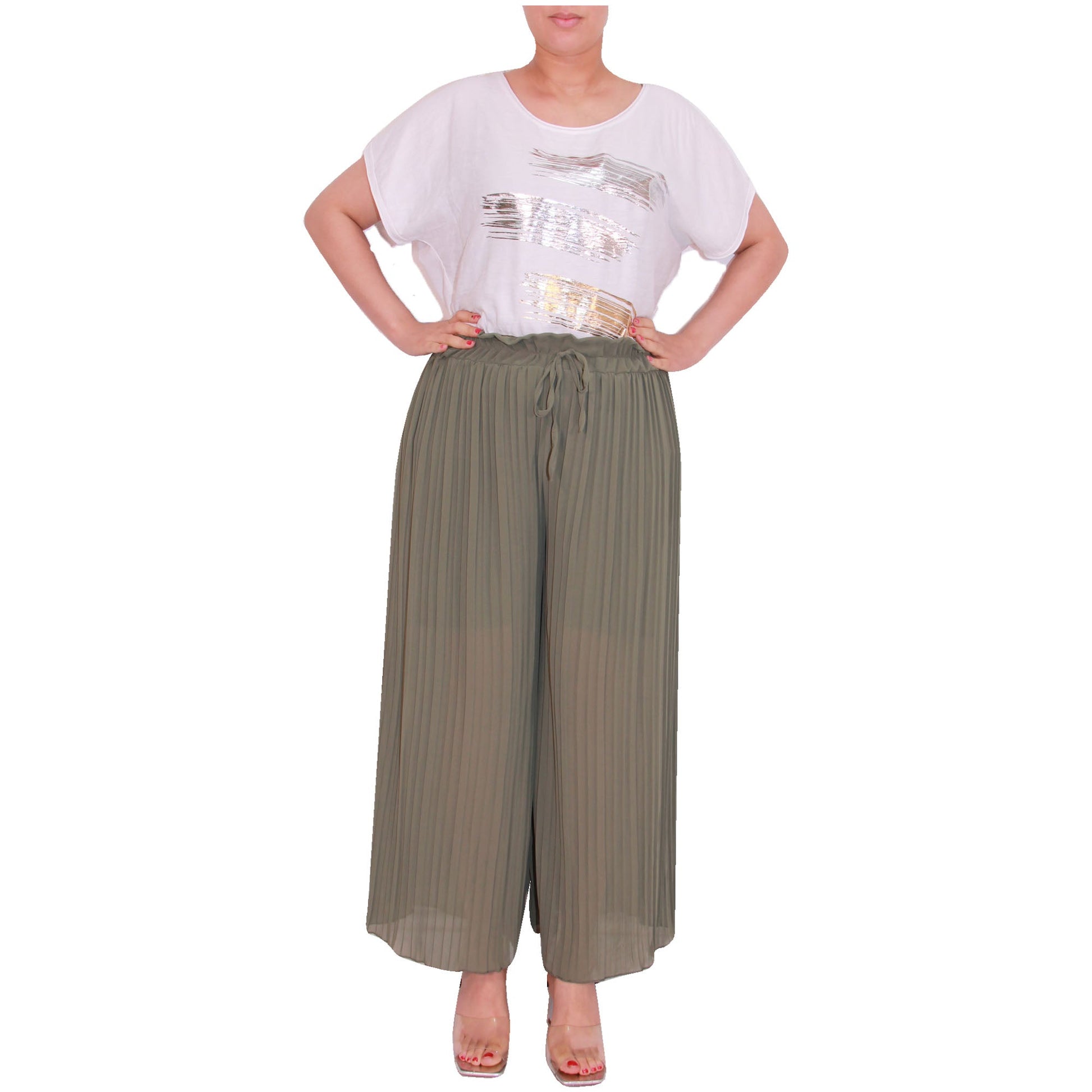 Ladies Palazzo Women Pleated Trouser Wide Leg Chiffon Pants Flared Culotte Office Loose Fit Clothing For Women Elasticated One Size Trousers Girls Crepe Bottoms Plus Size UK 10-16