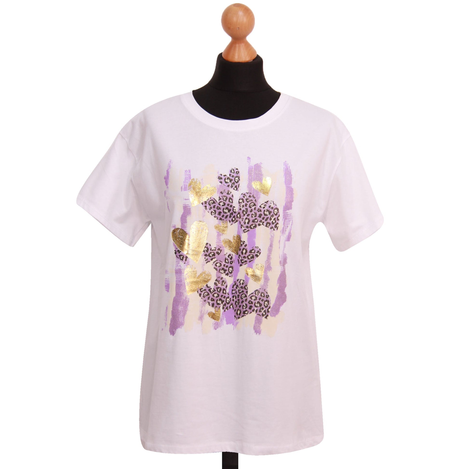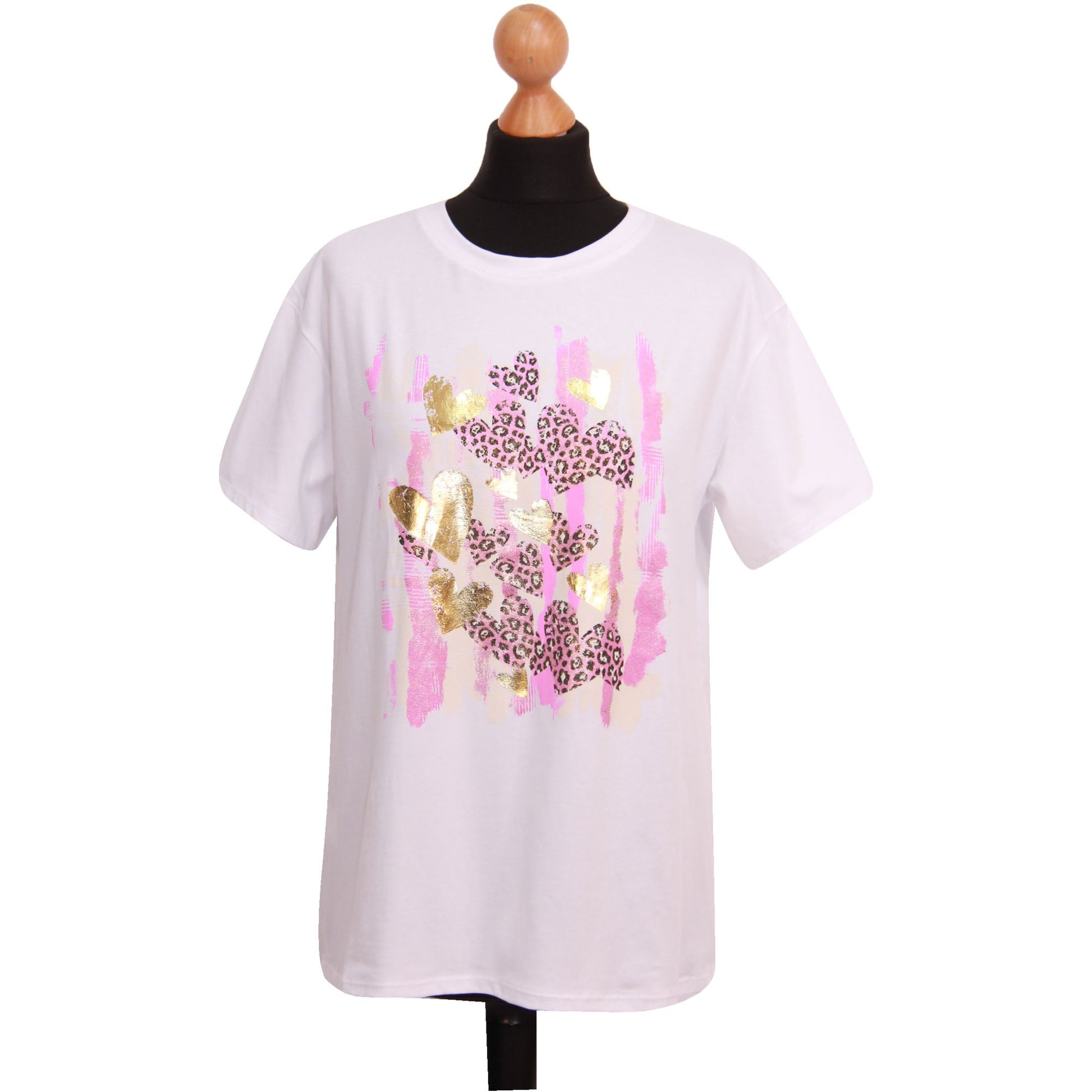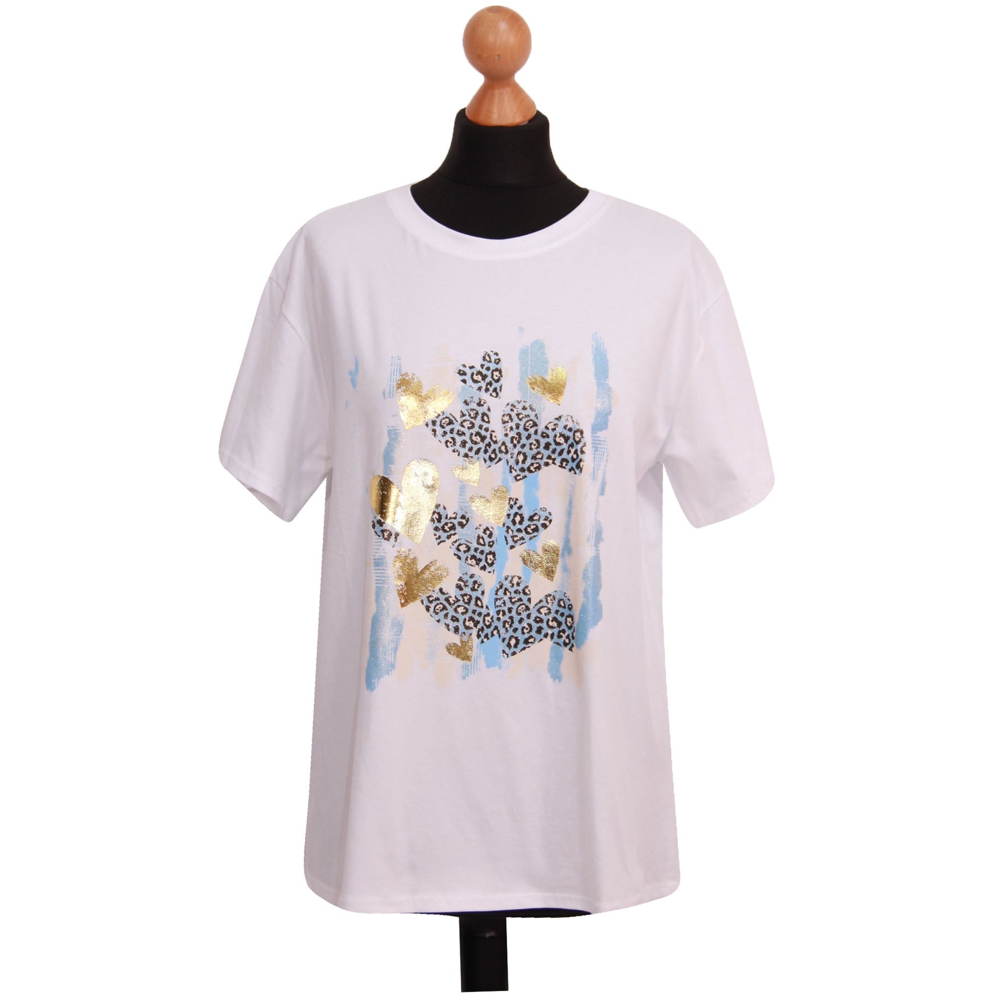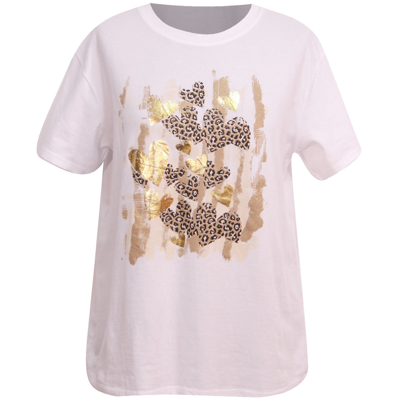 LADIES T SHIRT LEOPARD HEART PRINT WOMEN ITALIAN PRINTED TOP