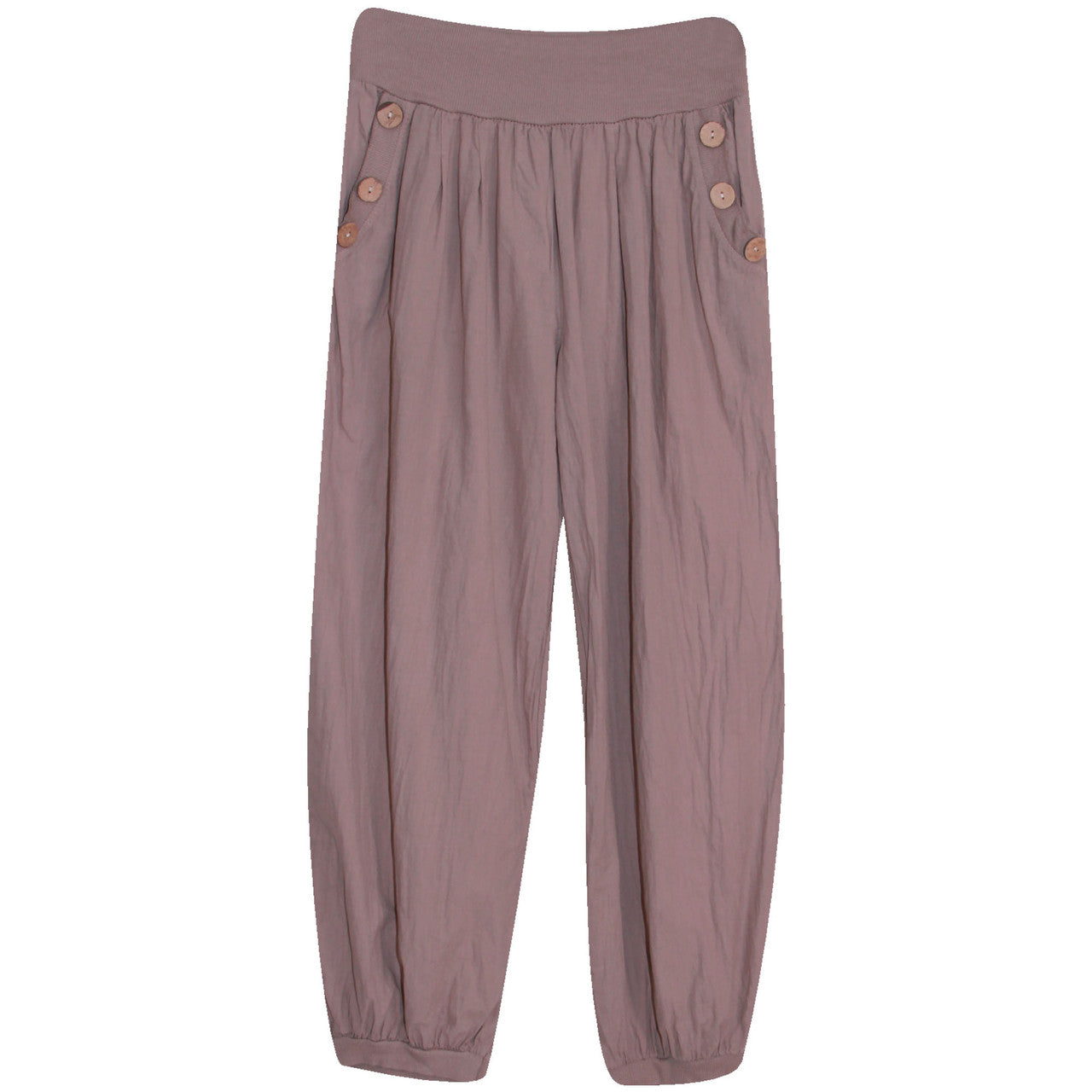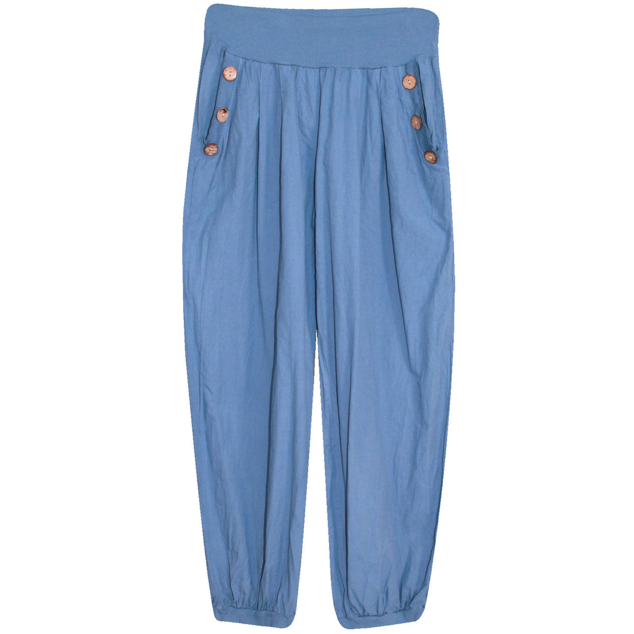 Women hareem toruser ladies cotton wood button elasticated waist pant