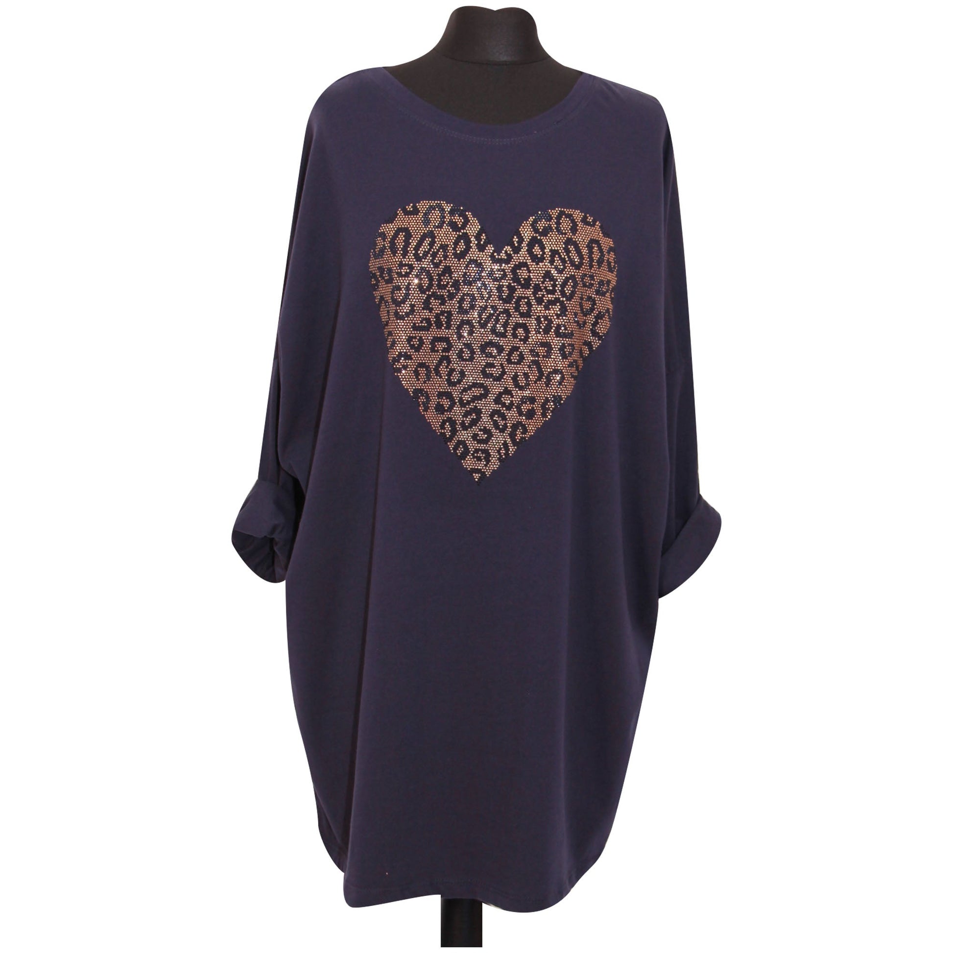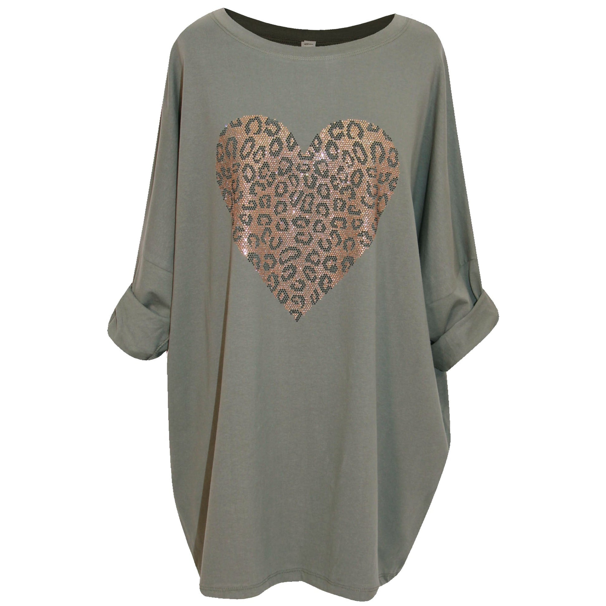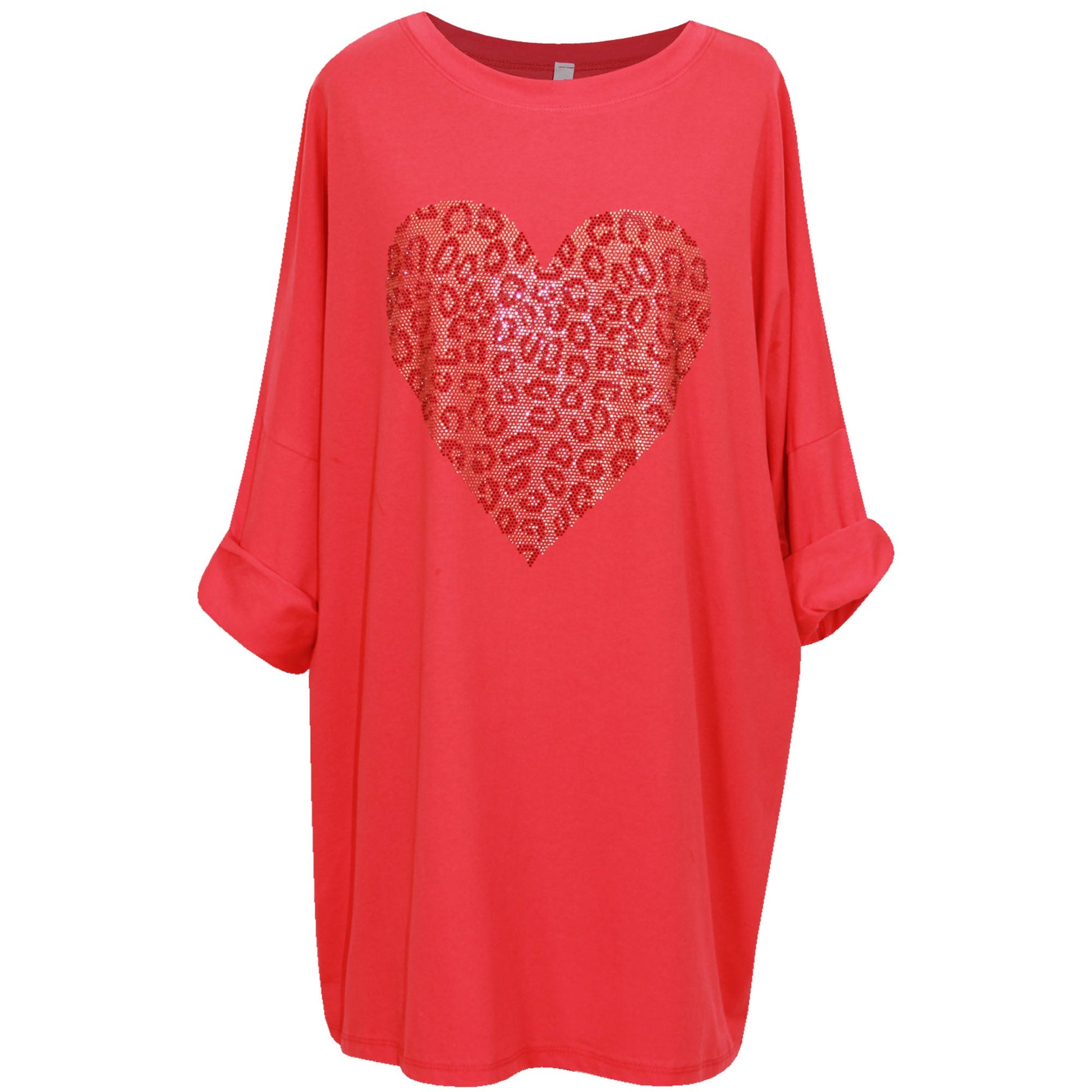 Women Italian Heart Top Ladies Animal Print Cotton Tunic Top
