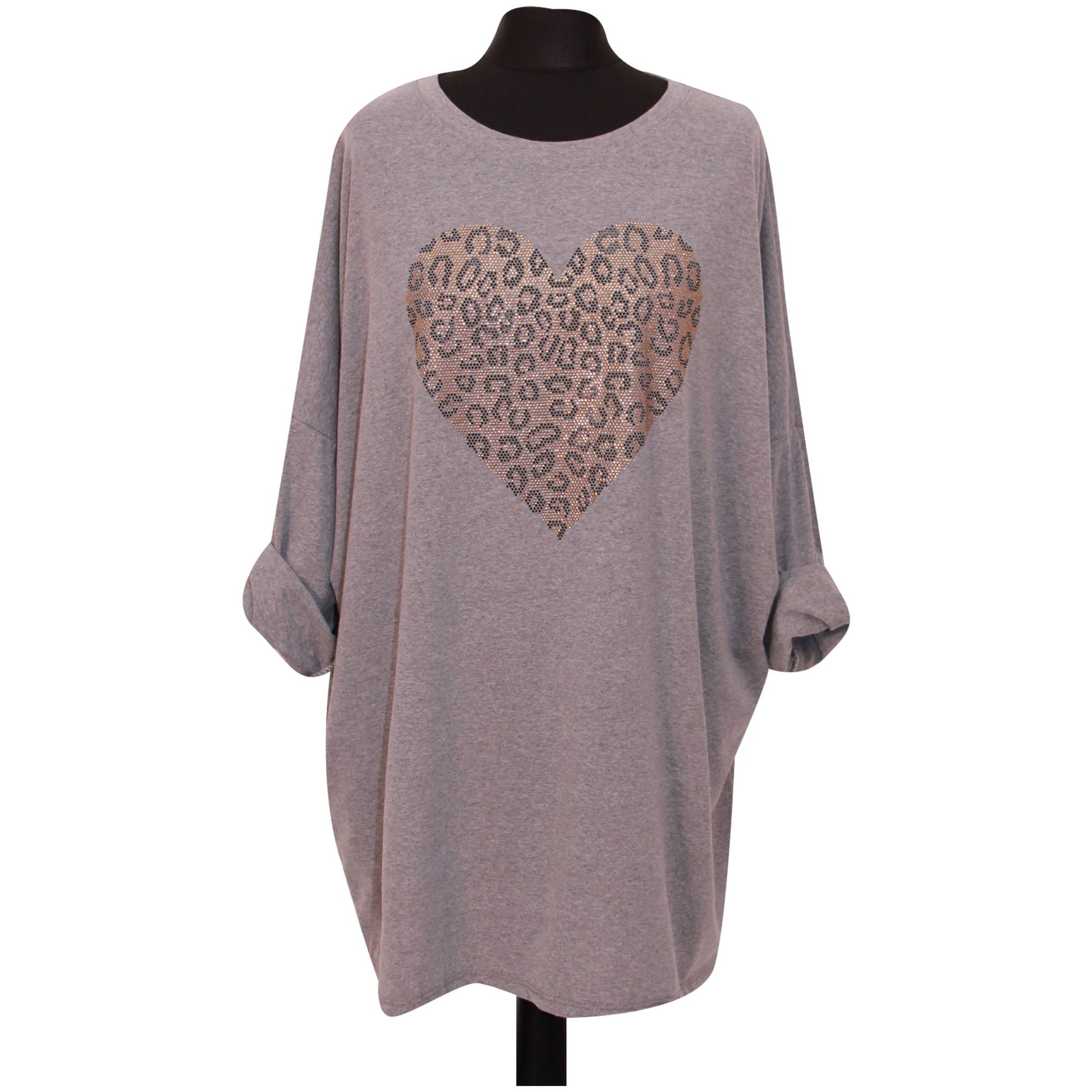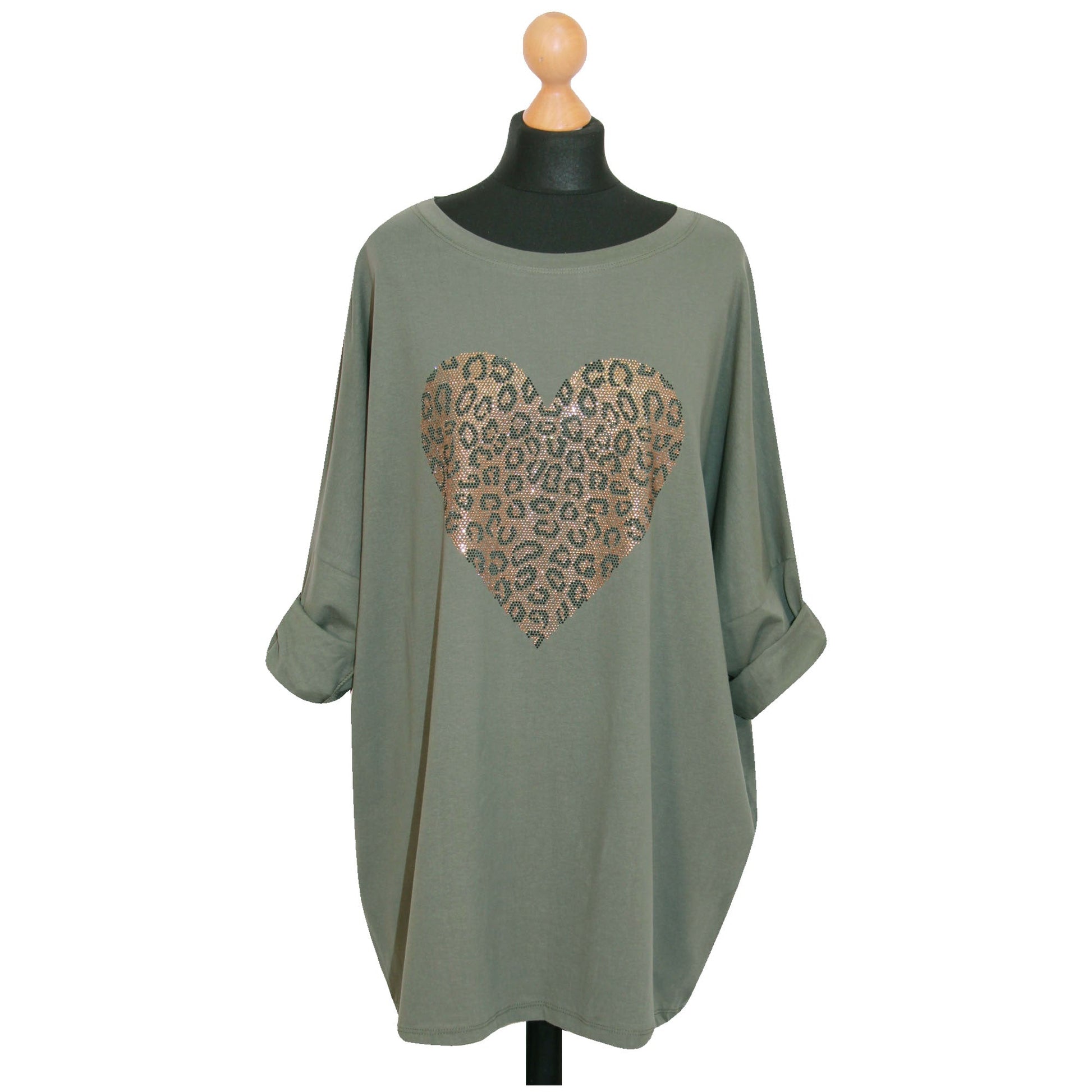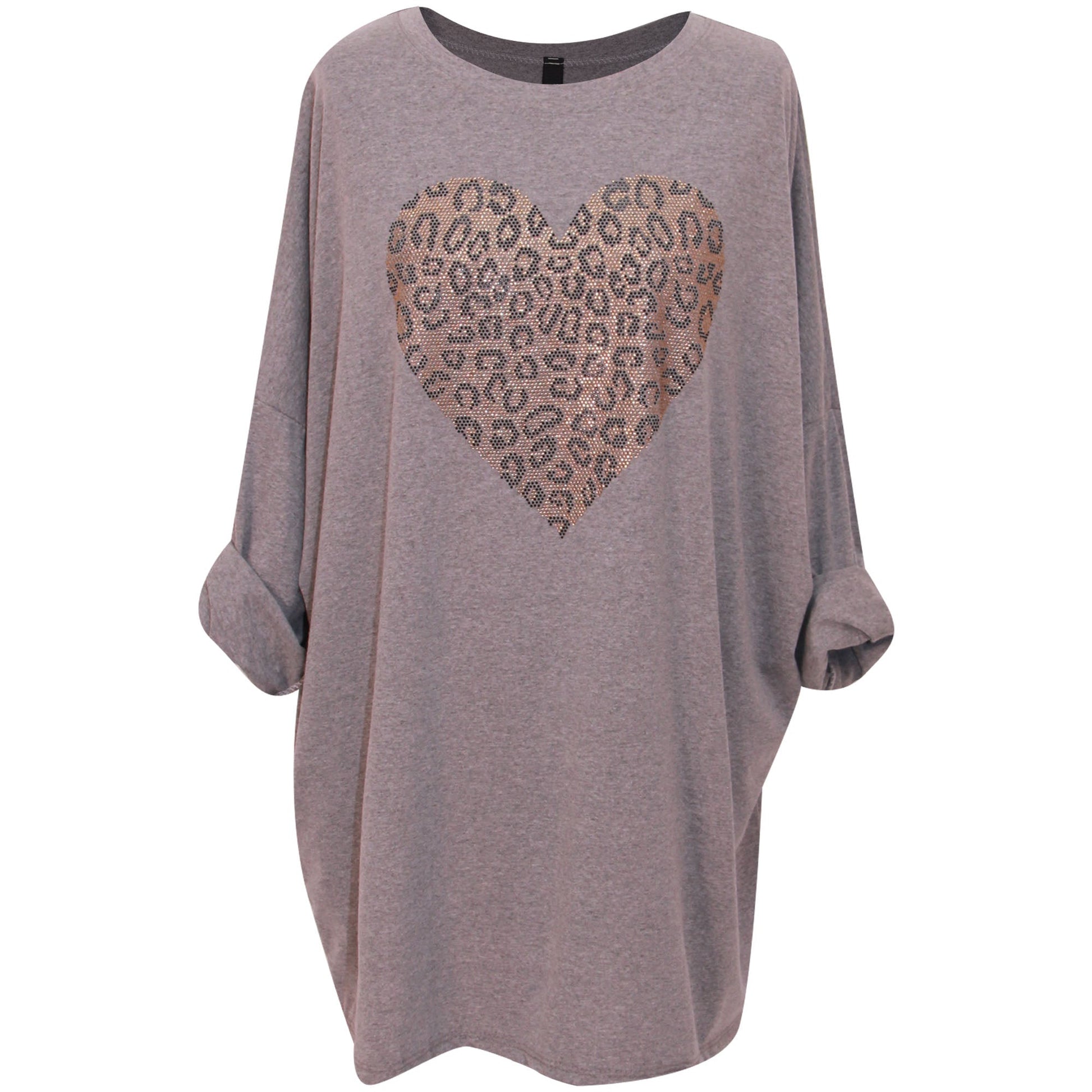 Women Italian Heart Top Ladies Animal Print Cotton Tunic Top