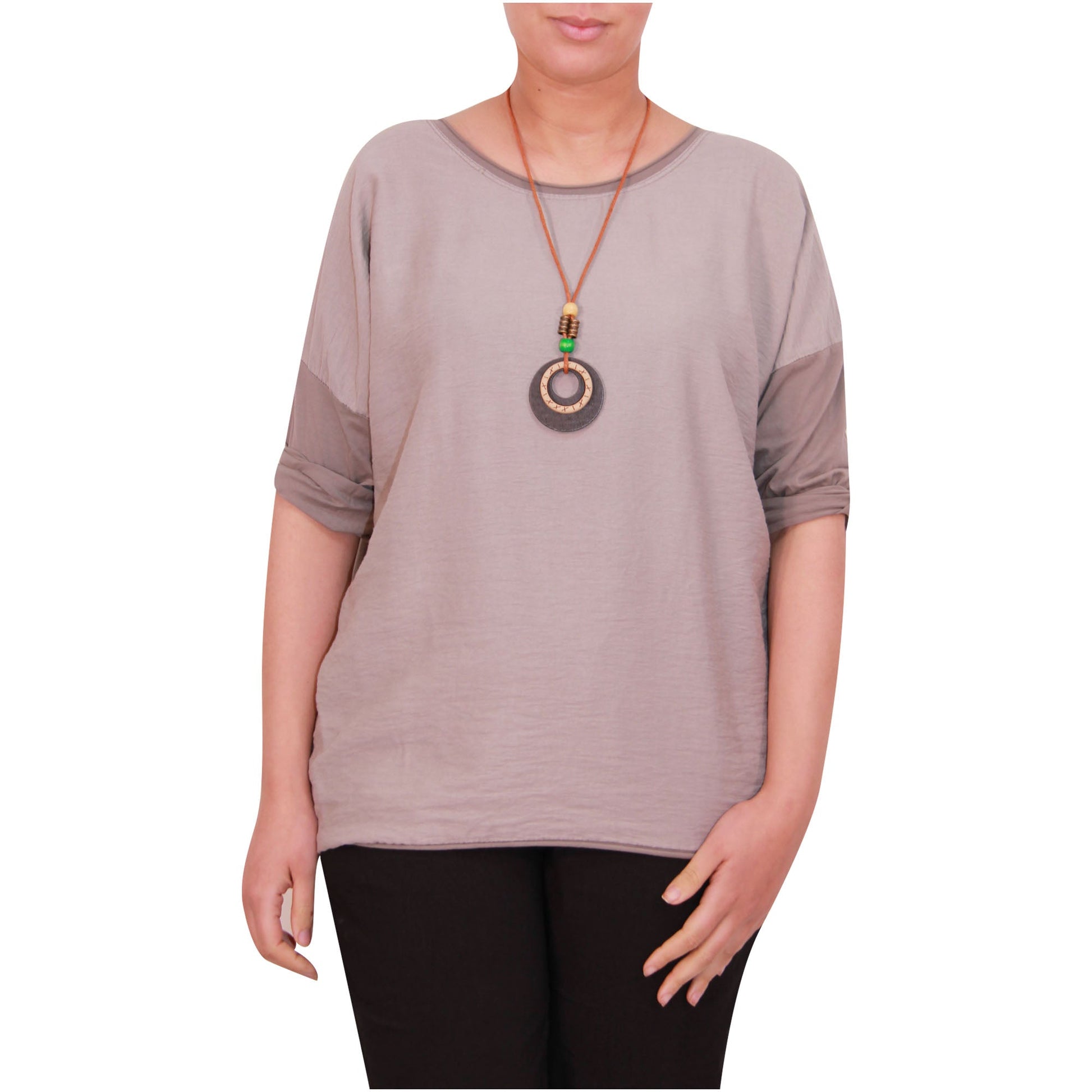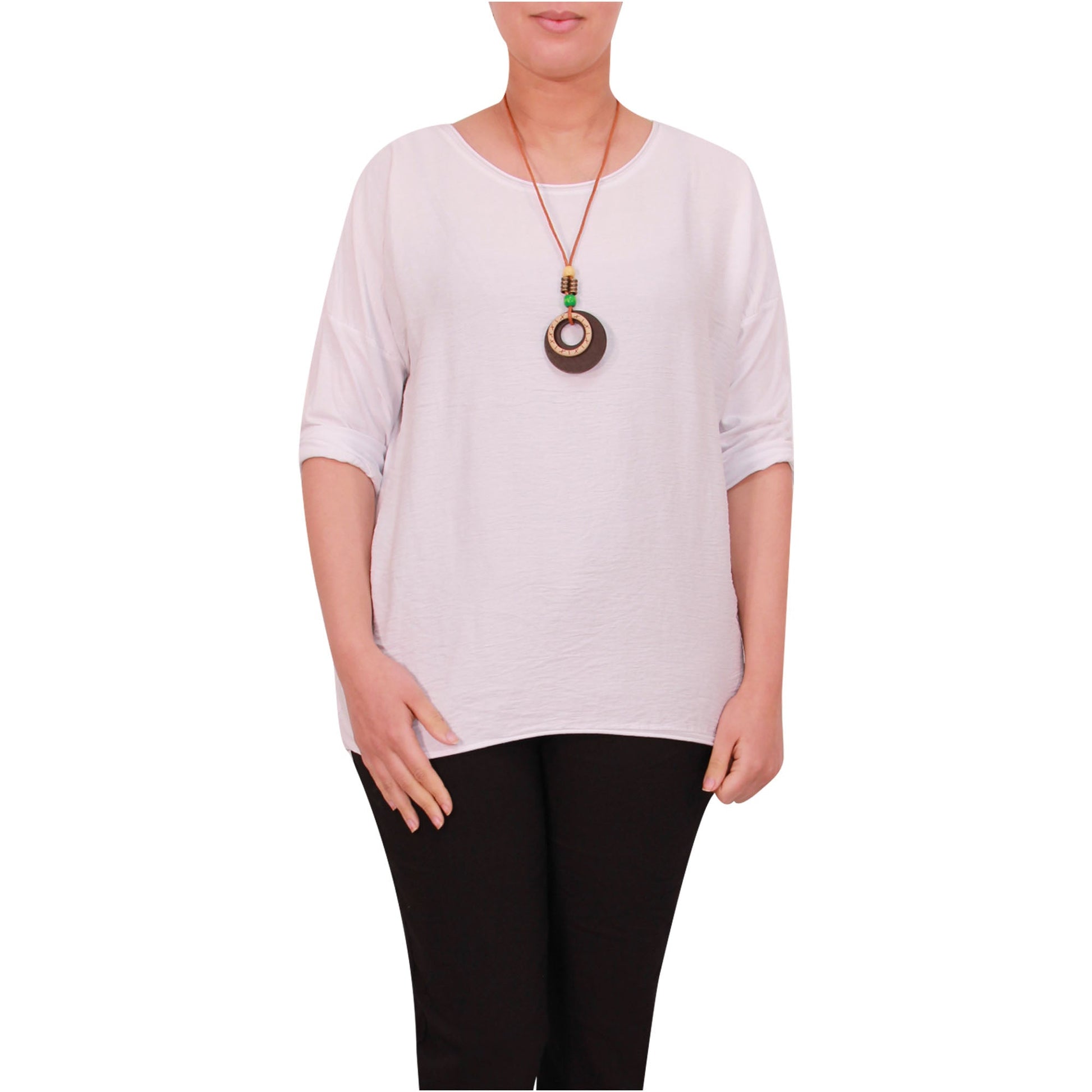 Women Italian Top Ladies Plain Summer Shirt Girls Tunic Shirt with Free Necklace.